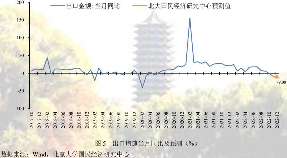 预计2022年12月份出口同比增速为-9.0%,较上月下降0.1个百分点,2022年全年出口同比增长7.9%,较去年下降22个百分点。