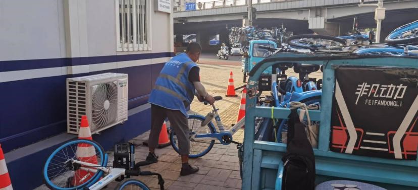 ▲ 吕师傅正在投放哈啰单车(徐文媛/摄)