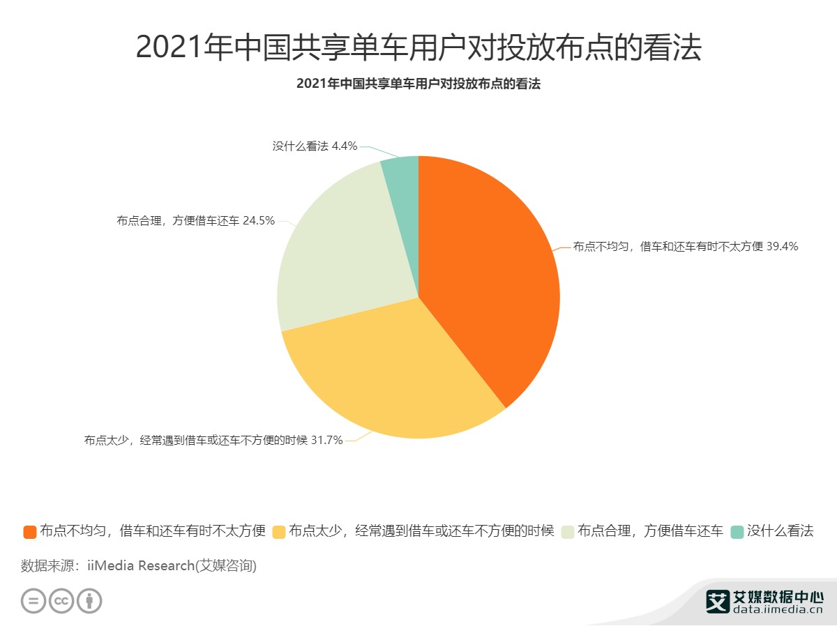 由用户对单车投放布点的看法可见,大部分人仍认为当前单车投放布点难以满足消费者对便利性的需求。