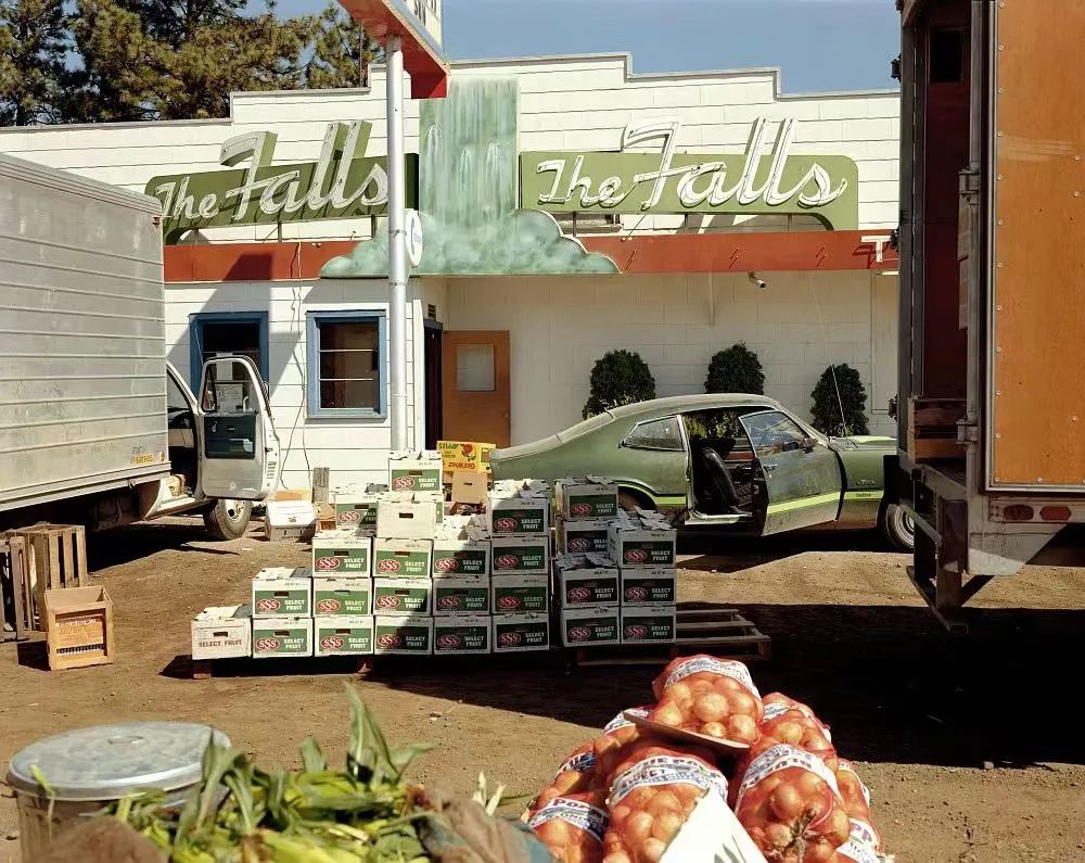 从1973年到1981年,肖尔频繁地回到北美的公路上。从系列最终呈现的面貌中,可以看到他拍了更多的建筑和街道,而较少拍摄人和静物。这样的选择与其说是预先设定,不如说是大画幅的特性,以及肖尔对媒介形式有所思考的产物。大画幅相机自身的体积、较长的设置时间和不菲的胶片价格,迫使肖尔仔细思考所要拍摄的内容和形式。他的工作方法完全改变了,摄影风格自然也随之改变,由此诞生了《不寻常的地方》这一系列照片的惊奇品质。