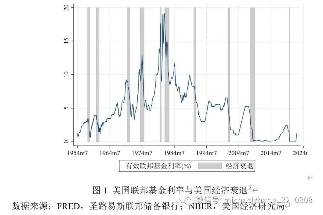 本文安排如下:第二节梳理自1954年以来的美联储13次加息周期;第三节分析美联储加息对美国产出水平、通货膨胀、金融市场和汇率的影响;第四节厘清美联储加息对新兴市场国家外汇市场、金融市场和产出水平的溢出效应;第五节总结本轮美联储加息的特点,并展望其对美国和新兴市场国家可能造成的影响。