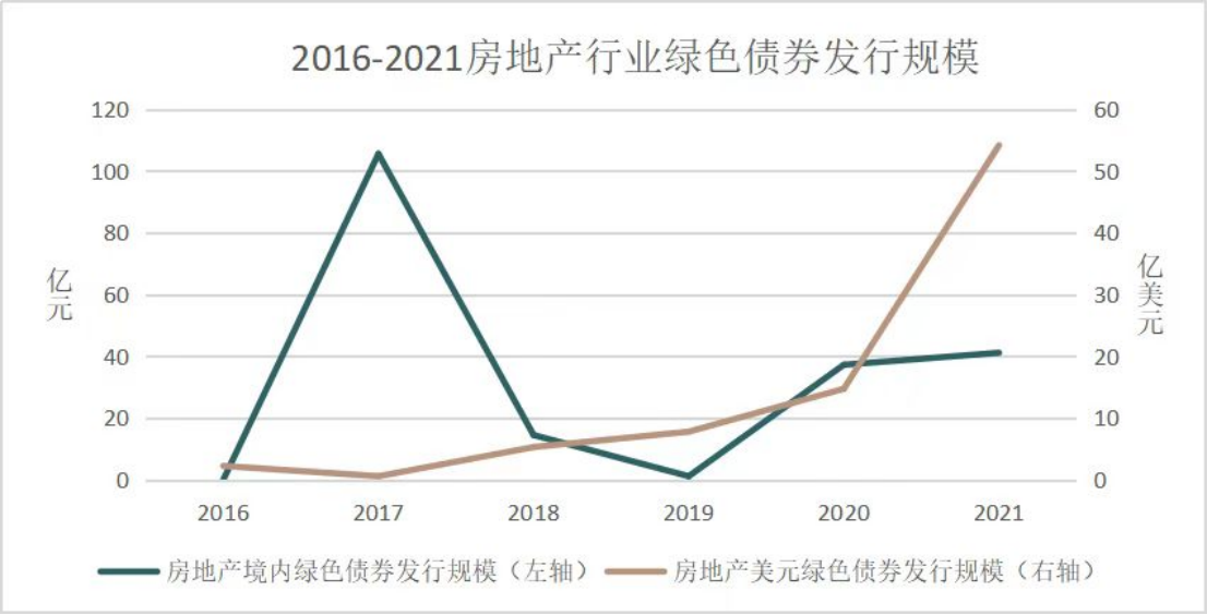 图2 房地产美元绿色债券发行规模及境内绿债发行规模情况