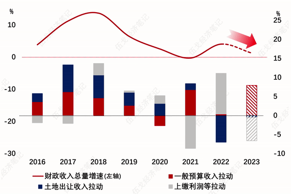 政府性基金方面,“保交楼”任务将延后房企拿地,国企购地等虚增土地出让收入行为受到抑制。今年土地出让收入降幅收窄但仍会有小幅拖累。