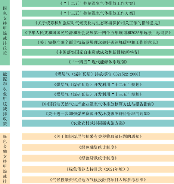 图3 我国支持甲烷减排相关政策