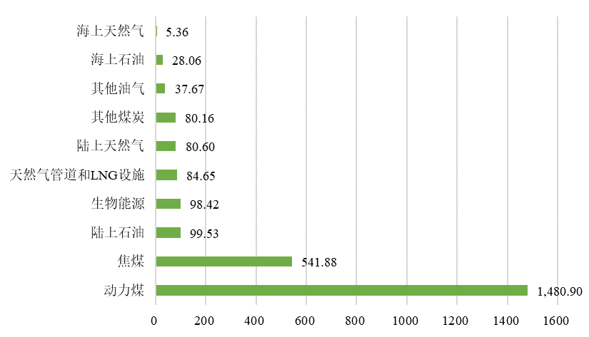 我国能源活动甲烷排放中,煤炭开采是最大的排放源,2022年排放量达到2102.94万吨,占比高达82.88%;油气行业甲烷排放量335.86万吨,占比13.24%;生物能源排放98.42万吨,占比3.88%,细分领域的排放量见图2。
