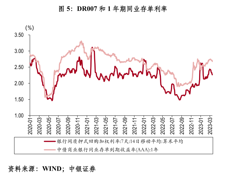 当前,我国银行体系都在稳增长和宽信用。压降实体融资成本和金融让利已经明显降低了银行的净息差,2022年四季度较2019年底下降了39个基点,处于历史低点。虽然广义货币流动性充足和M2同比高增,但是由于同业存单利率和DR007明显上升,部分中小银行的净息差可能下降更多,经营压力更大(见图5)。正值月末资金紧张时刻来临,本次降准约释放6000亿元长期资金,有助于降低银行负债成本,提高银行积极性。