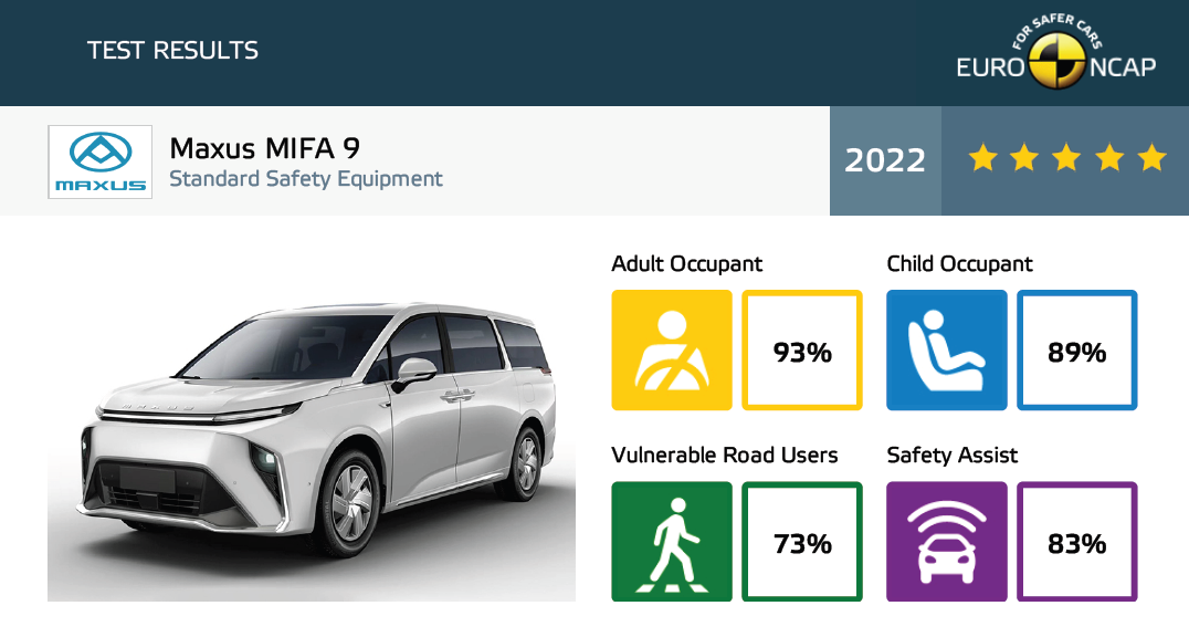 作为首款登陆欧洲市场的中国高端纯电MPV,上汽大通 大家MIFA9在严苛的欧洲新版Euro NCAP测试中得分破多项纪录,成人保护单项得分、儿童保护单项得分、正面碰撞试验成绩等多项均取得高分。