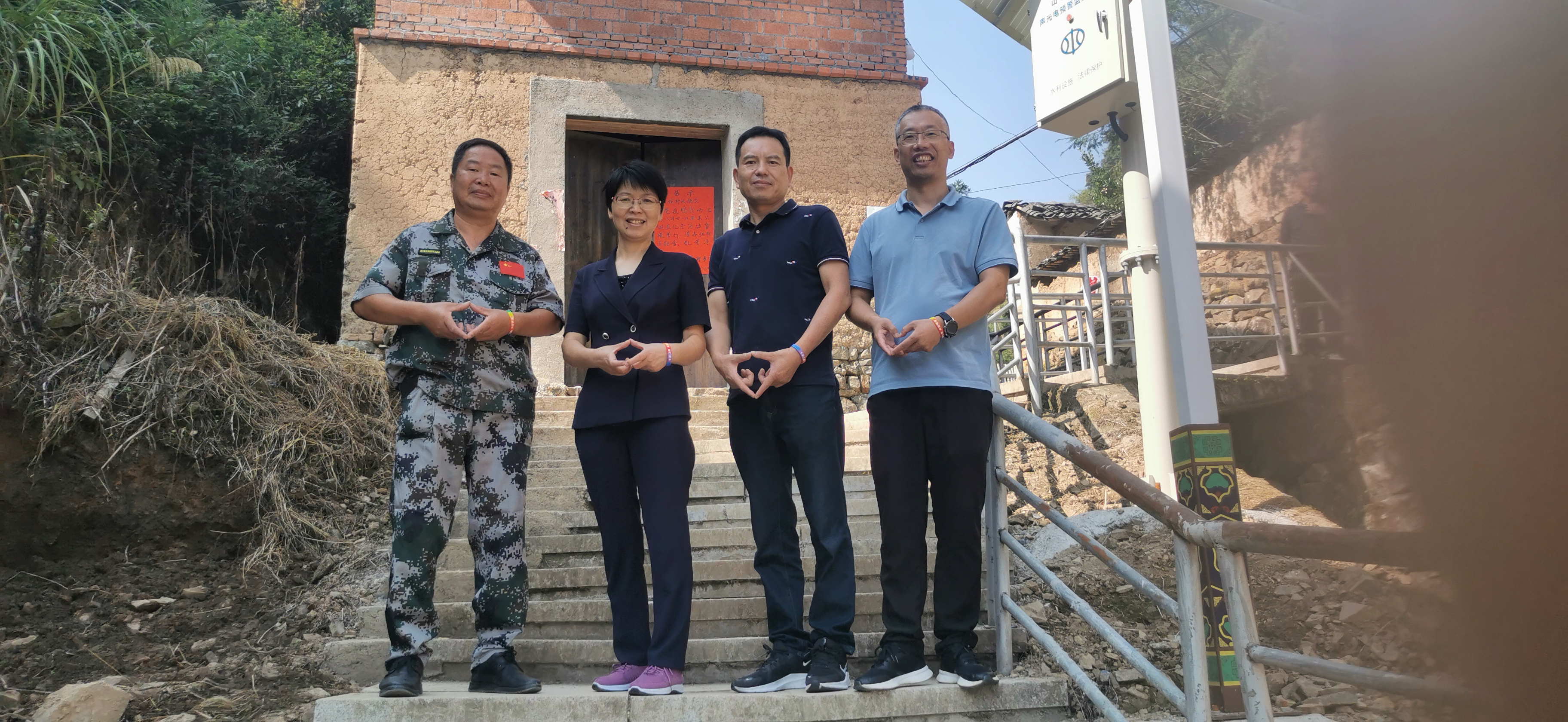 陈向红(左二)在吴莱山下的袅溪村与“觅松小分队”成员合影。