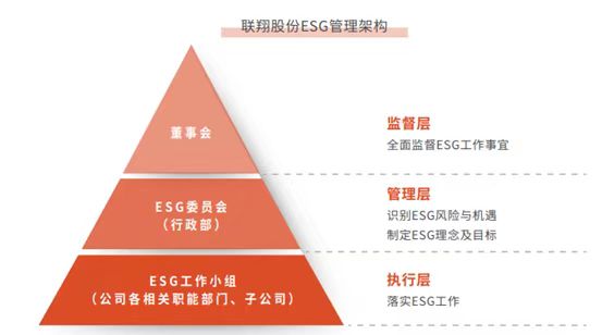 良好的ESG管理架构是确保可持续发展与公司整体战略有机融合的前提。联翔股份较早意识到ESG实践对公司的重要意义,2016年成立了企业社会责任(CSR)工作领导小组,专门负责社会责任工作的开展。2019年该小组进行调整和完善,2022年正式升级为联翔股份ESG委员会,由董事会全面监督公司ESG事宜并对其最终负责。