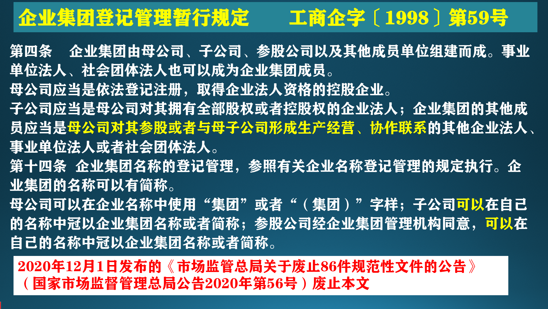 2、《企业集团登记管理暂行规定》虽已废止,但现行规定更宽松