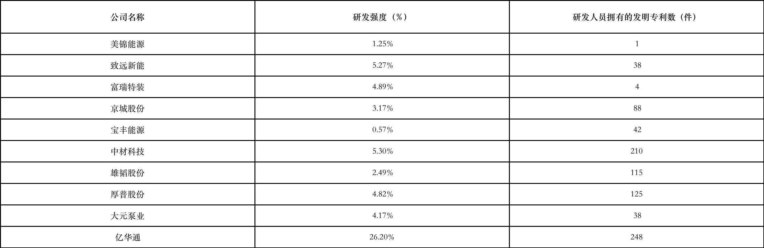 表1 “氢能源”赛道企业研发强度和发明专利数