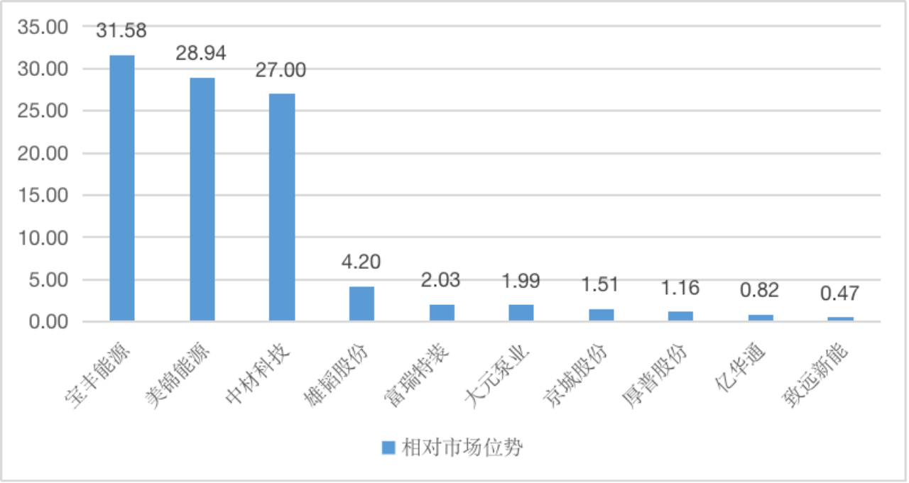 图2 “氢能源”赛道企业相对市场位势值(100分值)