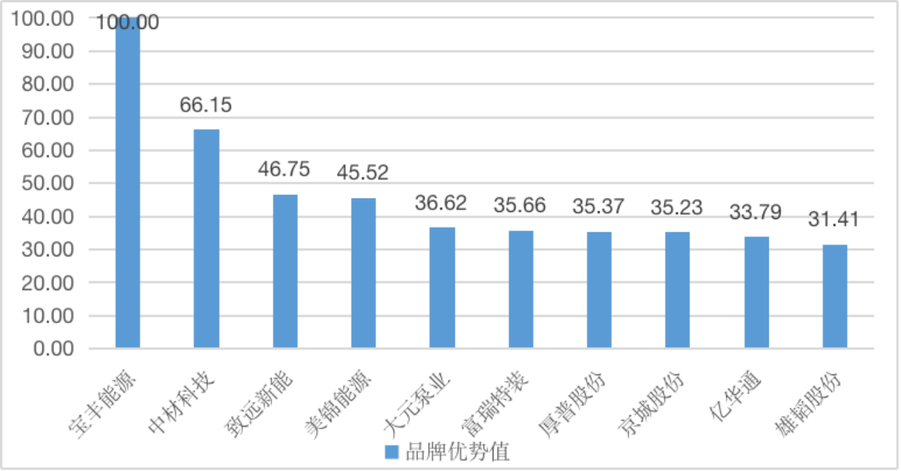 图1 “氢能源”赛道企业品牌优势值(100分制)