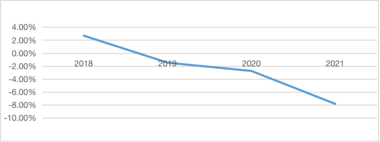 图5 亿华通2018年~2021年净资产收益率的变动情况