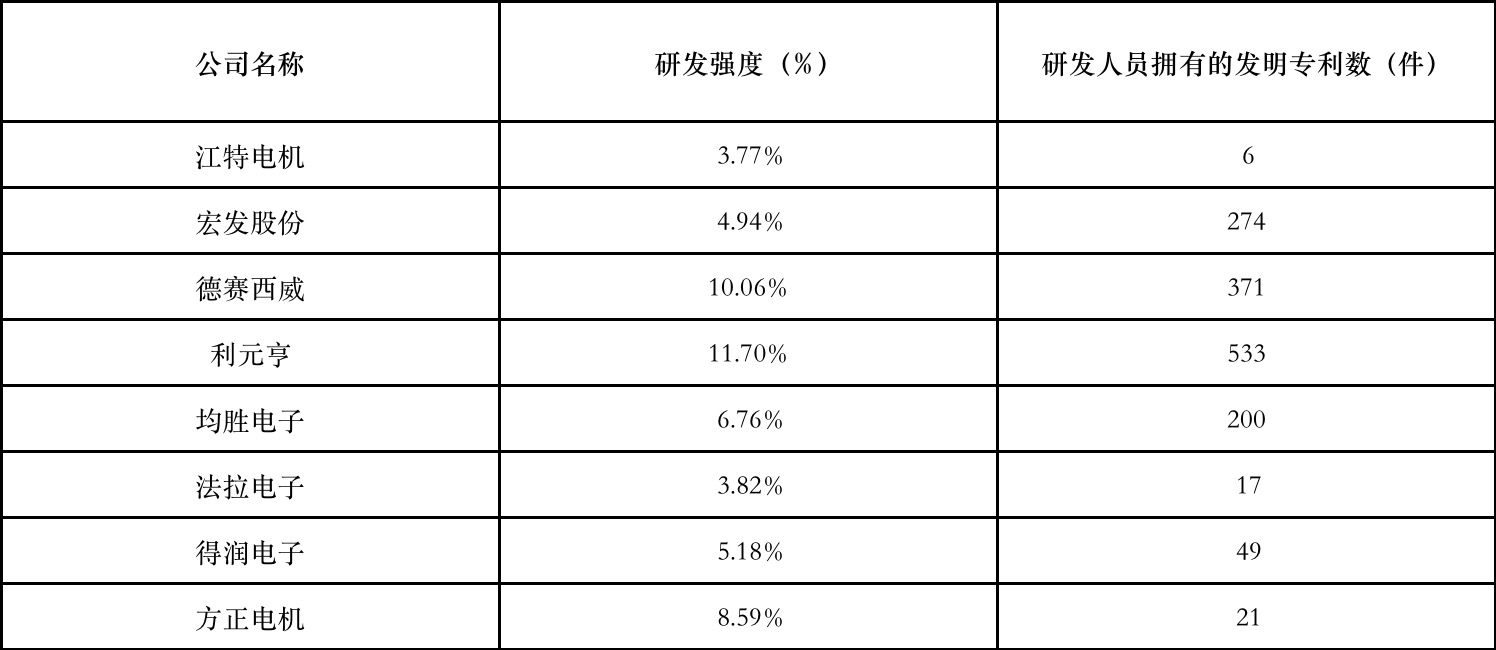 支撑关键核心技术突破的研发能力十分关键,研发强度以及发明专利情况可以有效反映企业的研发能力。从表1的数据看,2021年德赛西威研发强度10.06%处于行业头部,仅次于利元亨11.70%。与德赛西威业务相似的江特电机、宏发股份、均胜电子、法拉电子、得润电子仅在5%左右。同时,德赛西威也十分重视技术领域的专利布局,专利数高达371,位居第二,仅次于利元亨的发明专利数533件。