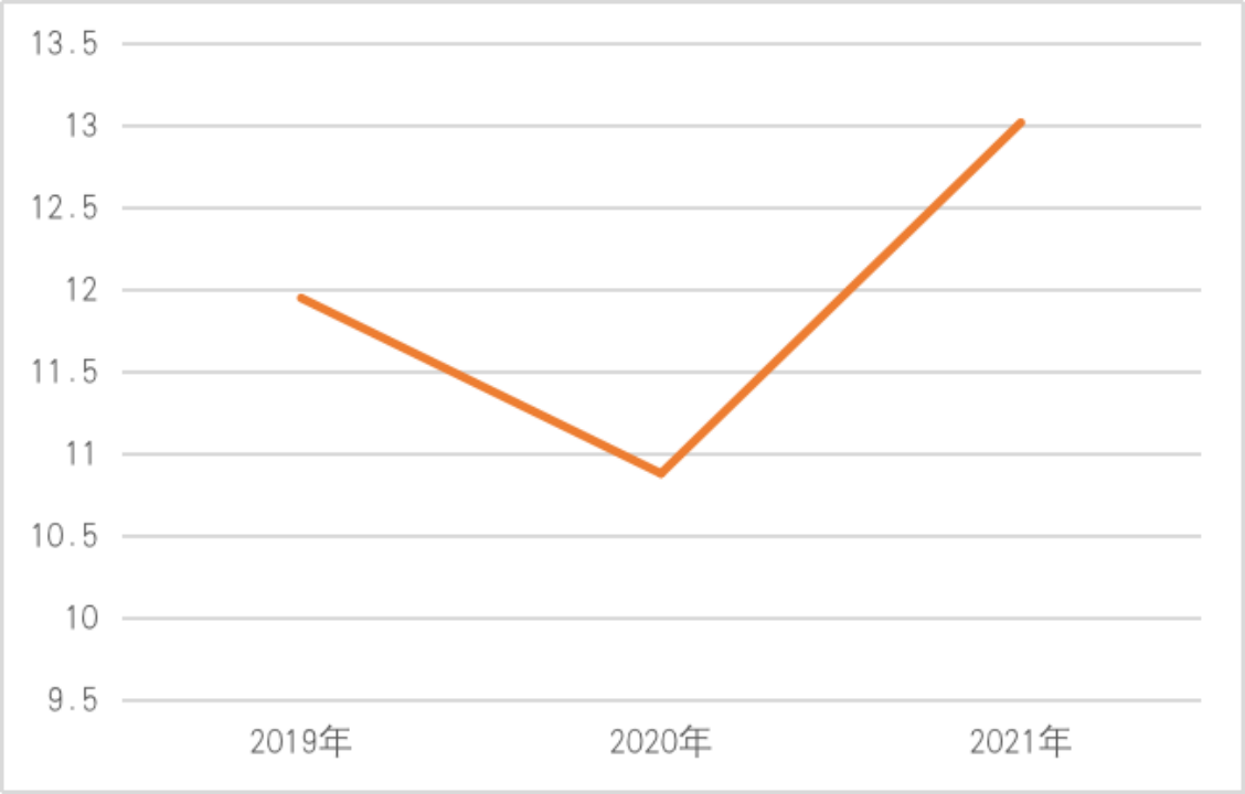 如图2所示,2019-2021年上声电子营业收入分别为11.95亿元、10.88亿元、13.02亿元。虽然2020年较2019年收入减少了8.95%,但上声电子2021年营业收入较2020年增长了19.67%,三年平均增长率为5.36%,总体呈增长态势。上声电子营业收入先减少后回升的原因主要是2020年受新冠疫情影响,境内外汽车制造厂商先后停工停产,对公司2020年经营业绩造成了一定的负面影响。2021年随着各国各地疫情防控常态化,全球汽车市场逐渐回暖,公司三大核心产品并驱放量,营收规模突破瓶颈。