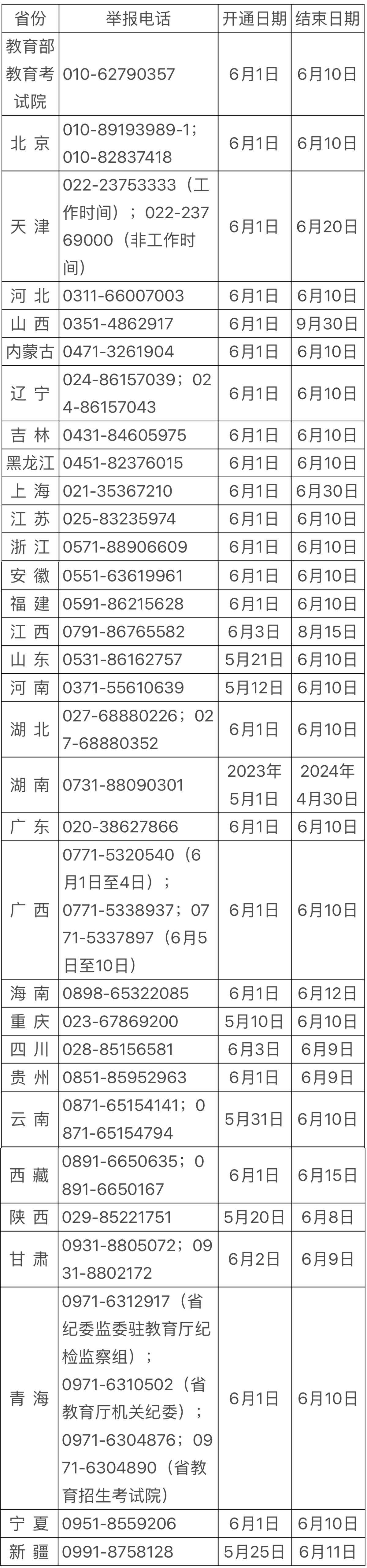 经济观察网讯 据教育部网站6月2日消息,近日,教育部统一公布了教育部以及各省(区、市)2023年的高考举报电话,欢迎广大考生、家长及社会各界人士及时举报反映涉及2023年高考的问题线索。教育部及各省(区、市)将会同有关部门根据举报线索第一时间核查处理,坚决维护高考公平公正。