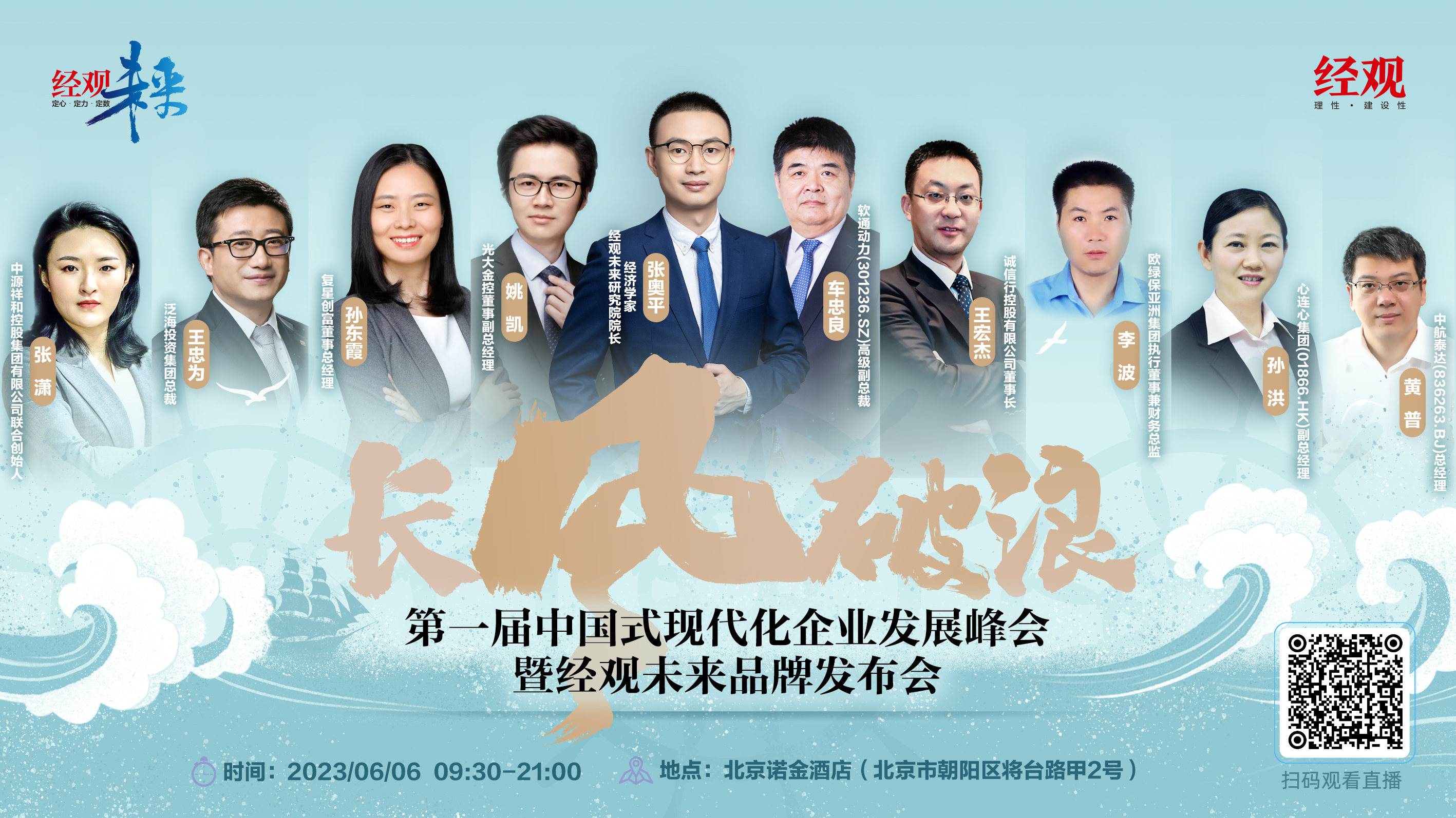6月6日上午9:30,第一届中国式现代化企业发展峰会暨经观未来品牌发布会举行。2023年中国经济将如何发展?值得关注的新兴产业有哪些?数字中国大背景下,企业数字化转型路径应如何与政策协同?徐洪才、张奥平、孙文凯、陈端等一众经济学者与行业龙头企业家共同读懂2023关键机遇,扫描下方图片二维码即可观看直播。