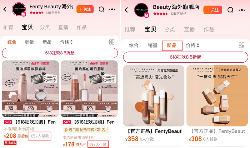 Fenty Beauty,由国际流行音乐巨星蕾哈娜创立的彩妆品牌,早在2019年,就通过天猫海外旗舰店正式进入中国市场。尽管这个来自美国的彩妆品牌在海外市场上稳居名人美妆品牌排行榜的首位,但在中国市场,它似乎尚未获得与其国际声誉相匹配的认知度和影响力。
