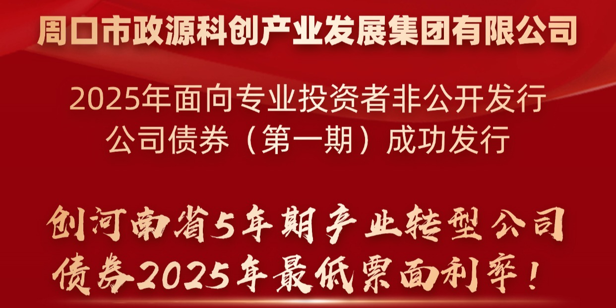 2月14日,民生证券助力周口市政源科创产业发展集团有限公司2025年面向专业投资者非公开发行公司债券(第一期)成功发行,债券简称“25政源01”。本产品采取簿记发行,发行总规模5亿元,发行期限为5年期,票面利率2.94%,创河南省5年期产业转型公司债券2025年最低票面利率!全场认购倍数达到4.42倍。
