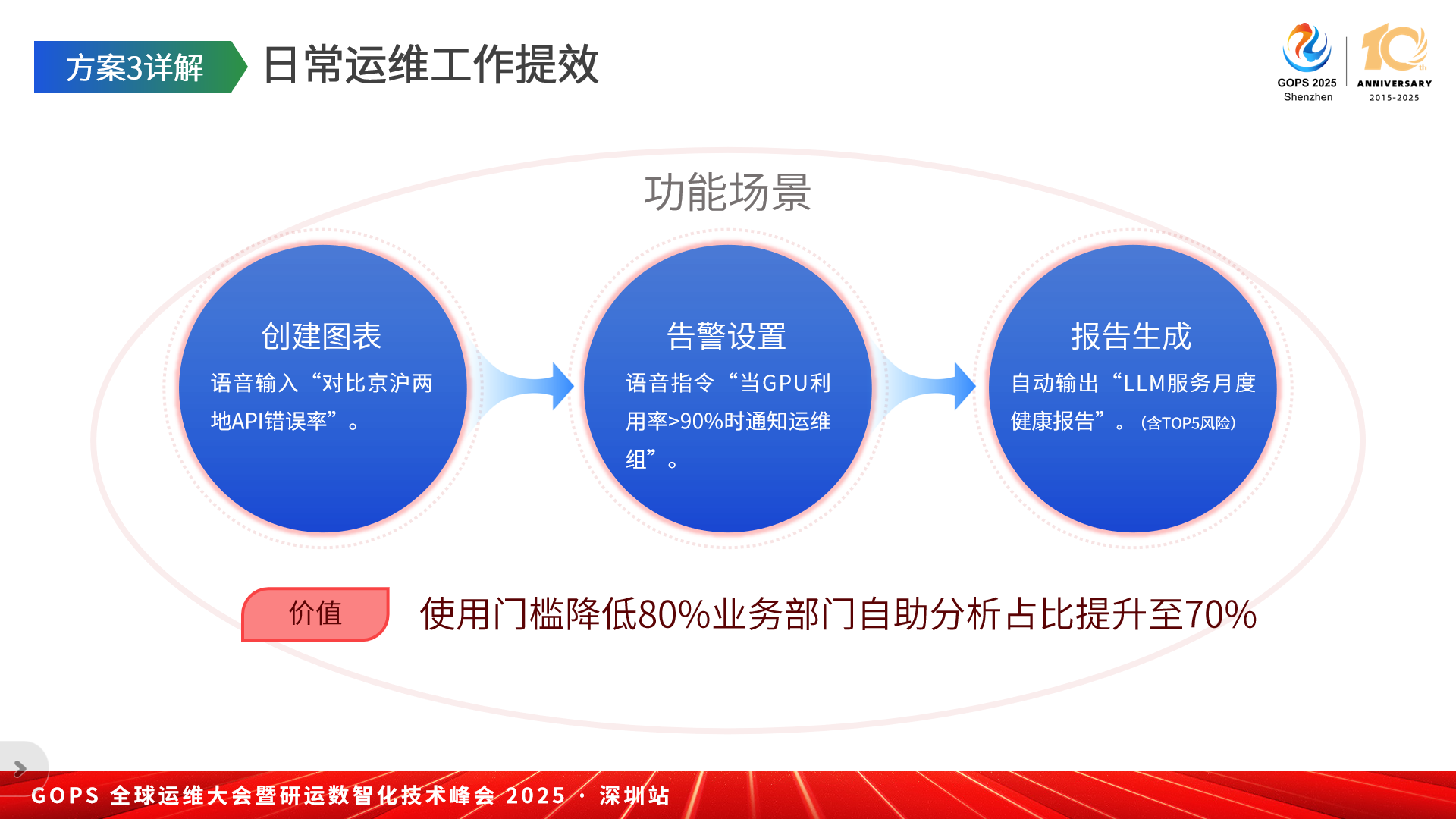基于自然语言转查询、语音指令生成报告及页面自动导航功能,将使用门槛降80%,助力业务部门自助分析占比提升至70%。