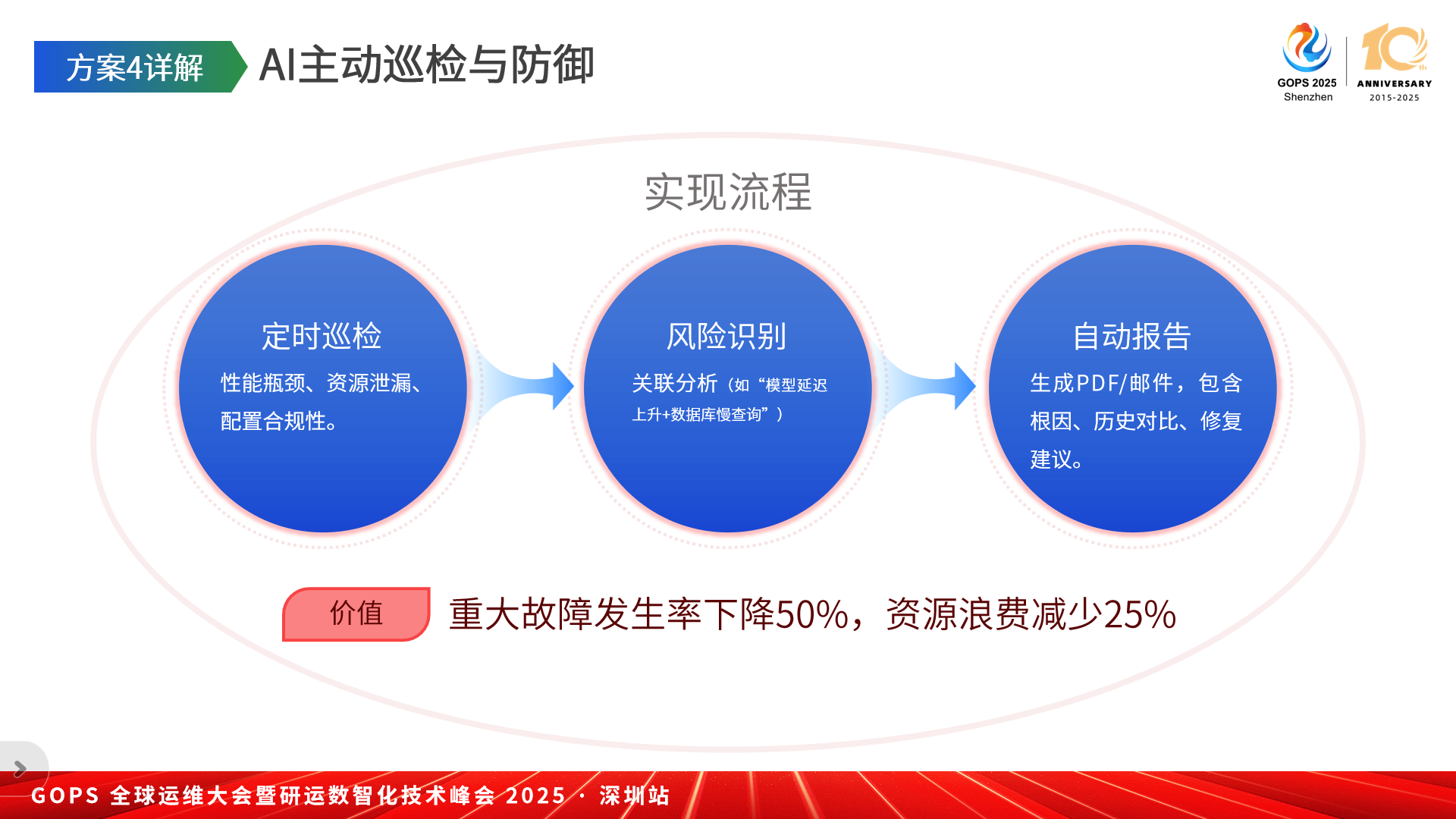 结合预设巡检策略、风险预测模型及自动修复建议,通过AI助理自动诊断生成报告,使重大故障发生率下降50%、资源浪费减少25%,推动运维从被动响应向主动防御跨越。