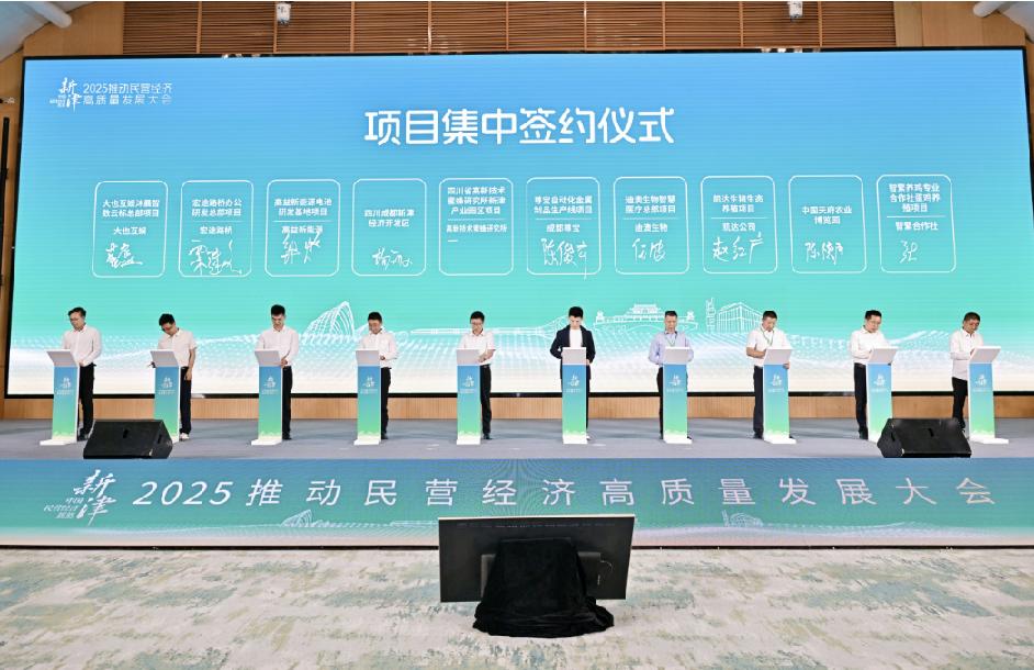 大会还举行了项目集中签约仪式和两场金融需求和轨道交通供需的行业对接会。此次集中签约涉及总投资超100亿元,华润饮料、智琪食品、安之孚储能、盛邦新能源、宏途路桥、民富食丰等16家企业参与签约,为新津民营经济发展注入新的活力。