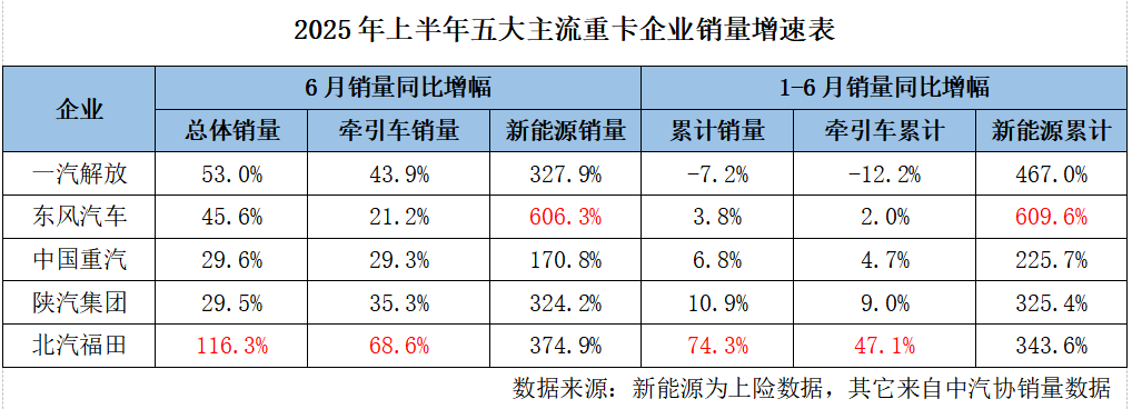 重卡五强中考成绩单:福田总体增速领跑,新能源东风穿上“领骑衫”,传统势力分化加剧