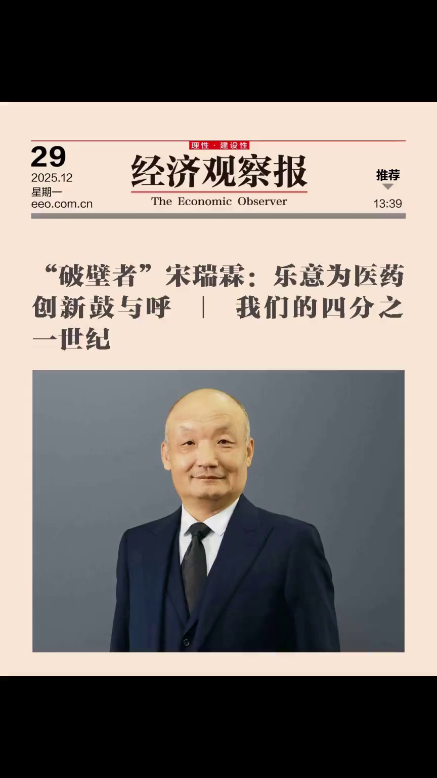 “破壁者”宋瑞霖:乐意为医药创新鼓与呼 | 我们的四分之一世纪