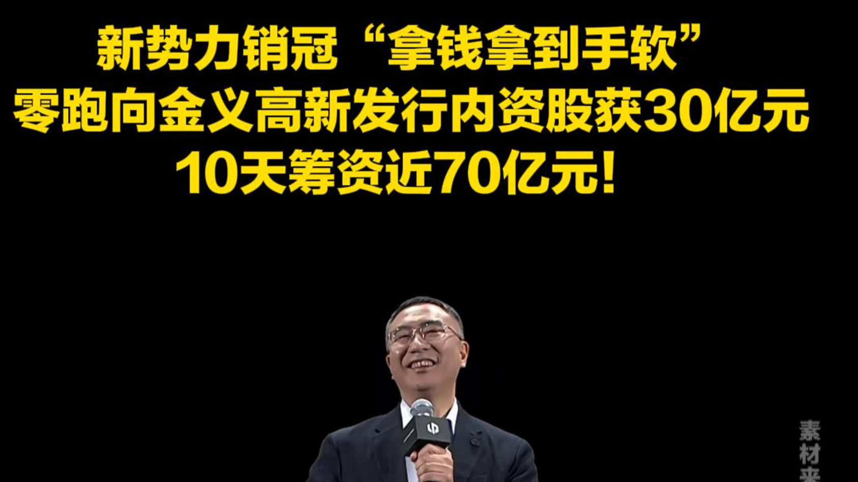 新势力销冠“拿钱拿到手软” 零跑汽车向金义高新发行内资股获30亿元
