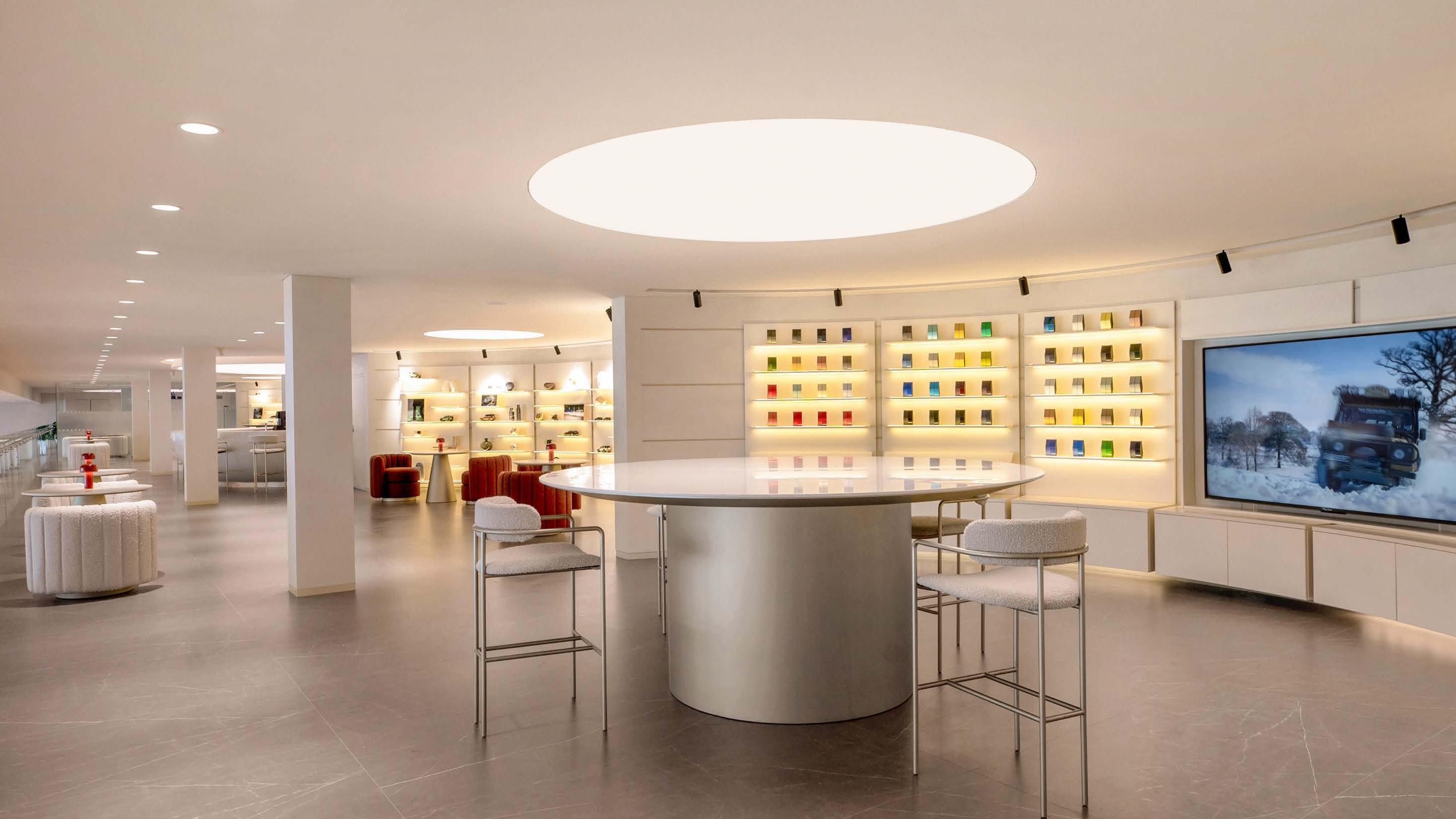 首先体现在设计与材质里。无论是品牌形象还是产品设计上,捷豹路虎从不堆砌繁复装饰。今年7月,揽胜首次亮相全新图形标识,是专为特定活动场景设计的艺术图案,新标识以两枚“R”字母构成,延续了品牌一贯的极简风格。