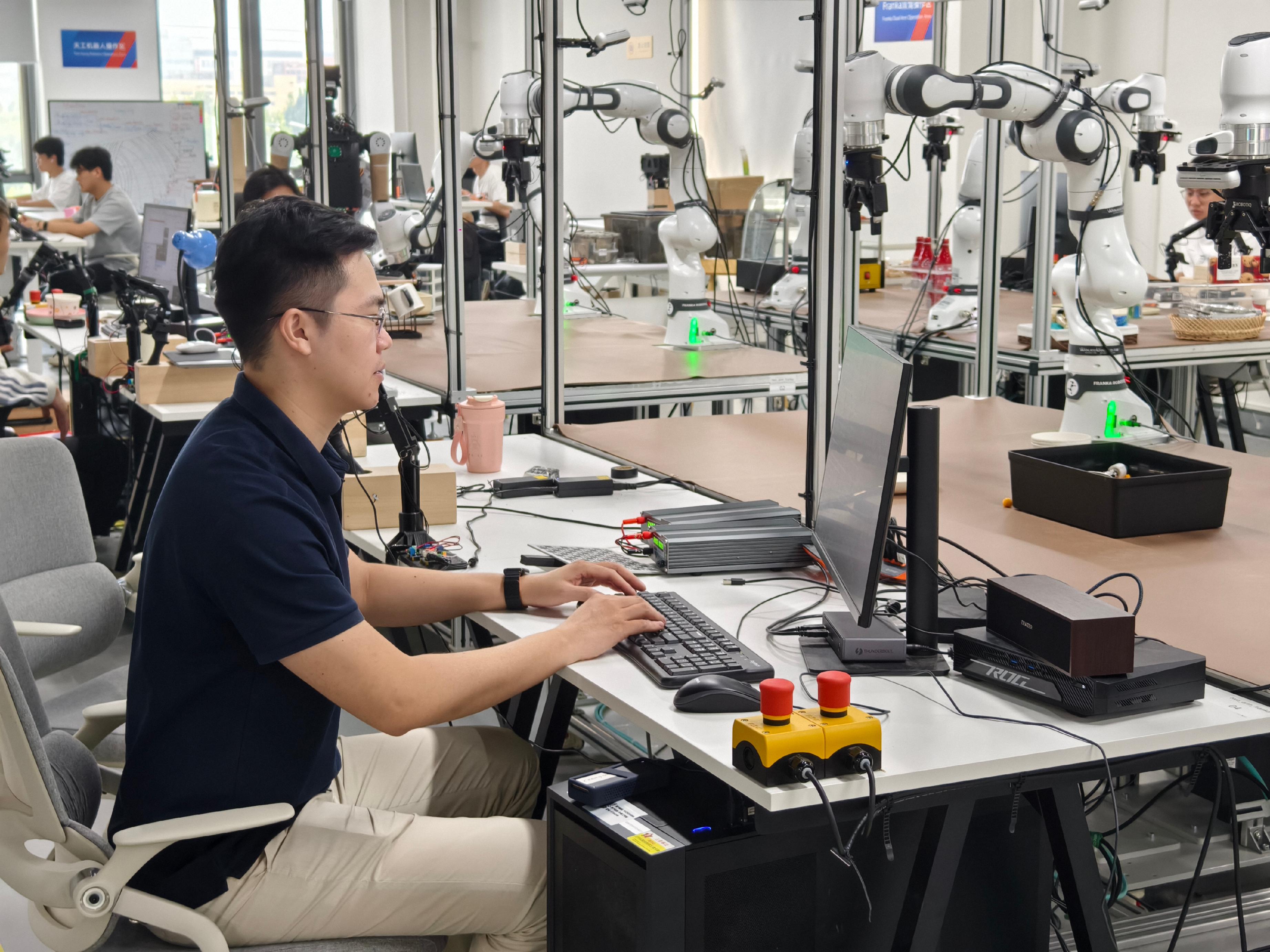 在北京海淀的一栋写字楼里,采集员坐在机械臂前,夹起、对齐、折叠、放下——每个动作要重复上百遍,只为让机器人学会“像人一样”进行家务劳动。