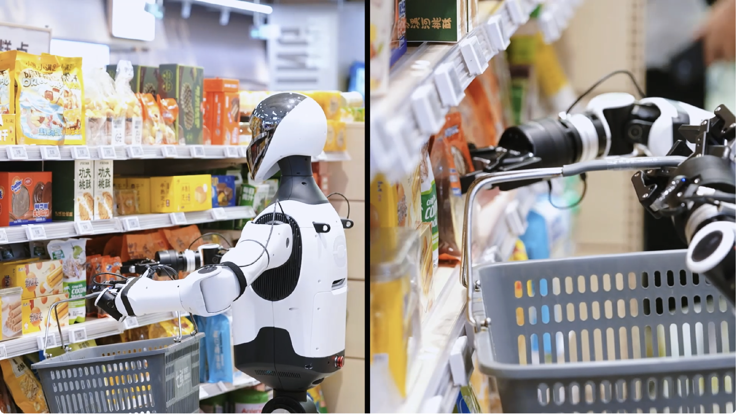7月,在北京亦庄的一家七鲜超市,北京人形的“具身天工”机器人正在货架间进行补货训练。它身旁站着两位工程师,一人手持遥控设备控制操作,另一人负责记录数据与动作表现。他们每天会采集20多个微任务,分成几十个子动作。人流密集会对采集作业产生一定干扰,一位工程师称:“拍照、围观的人很多,觉得机器人训练很新鲜。”