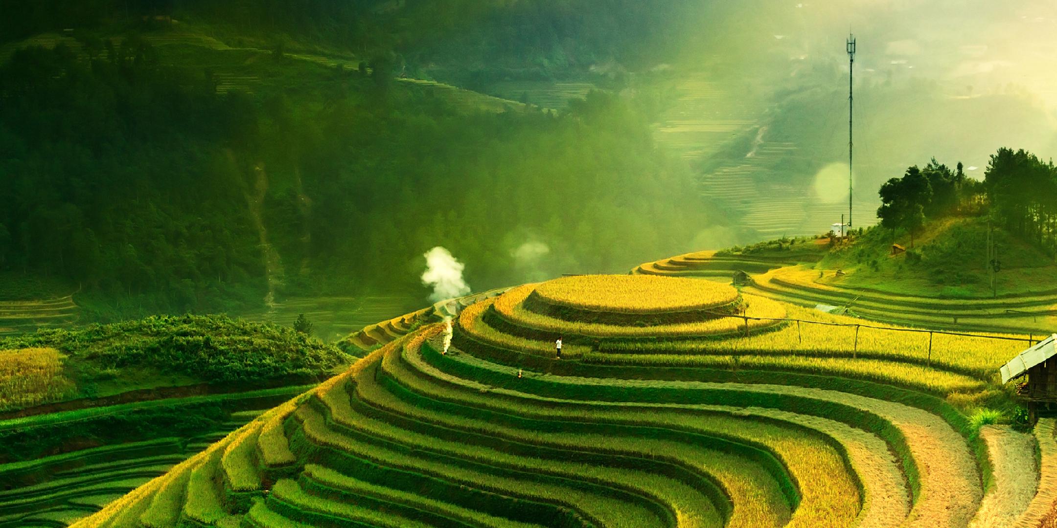 秋收时节,在崇义县,开垦达千年的上堡客家梯田高低错落,晨光中层次分明,稻穗枝头由绿转金,金色波涛由点到面,宛如山野间的流动乐章。放眼望去,依山开垦的梯田层层叠叠,布满了连绵的山坡。成熟的稻谷一片金黄,随风起伏。从高处俯瞰,梯田的线条蜿蜒曲折,与周边的村落、山林共同构成了一幅典型的乡村秋景图。