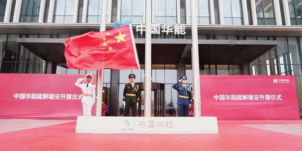 今天上午,中国华能集团有限公司与中国中化控股有限责任公司在雄安新区的总部大楼前举行了升旗仪式,标志着作为雄安新区首批疏解央企的中国华能和中国中化正式迁驻雄安。