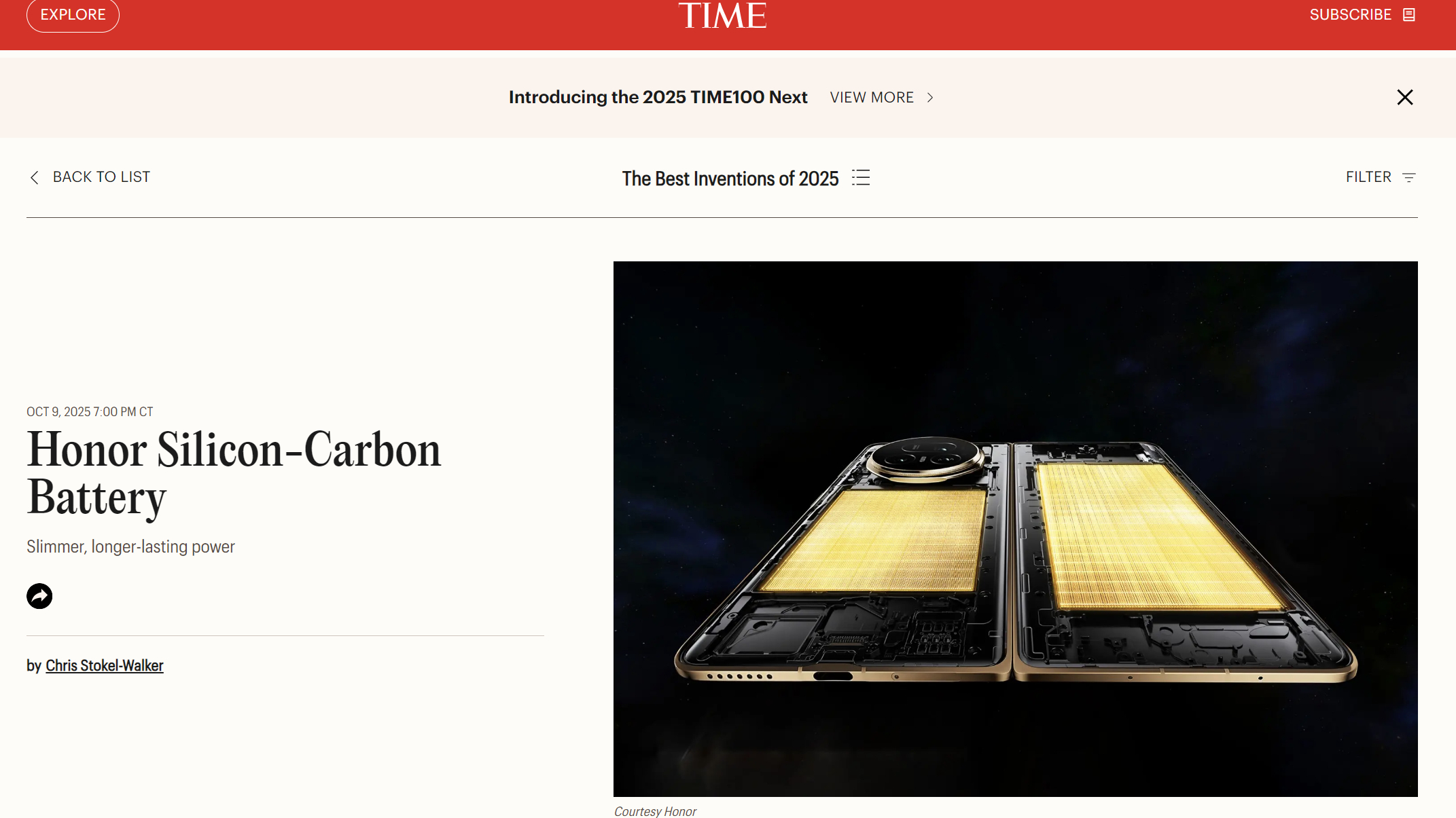 经济观察网 近日,《时代周刊》公布2025年“最佳发明”榜单,荣耀凭借“青海湖刀片电池”与“端侧AI换脸检测技术”,成为唯一斩获主榜两项大奖的中国品牌,展现其在科技创新领域的强劲实力。