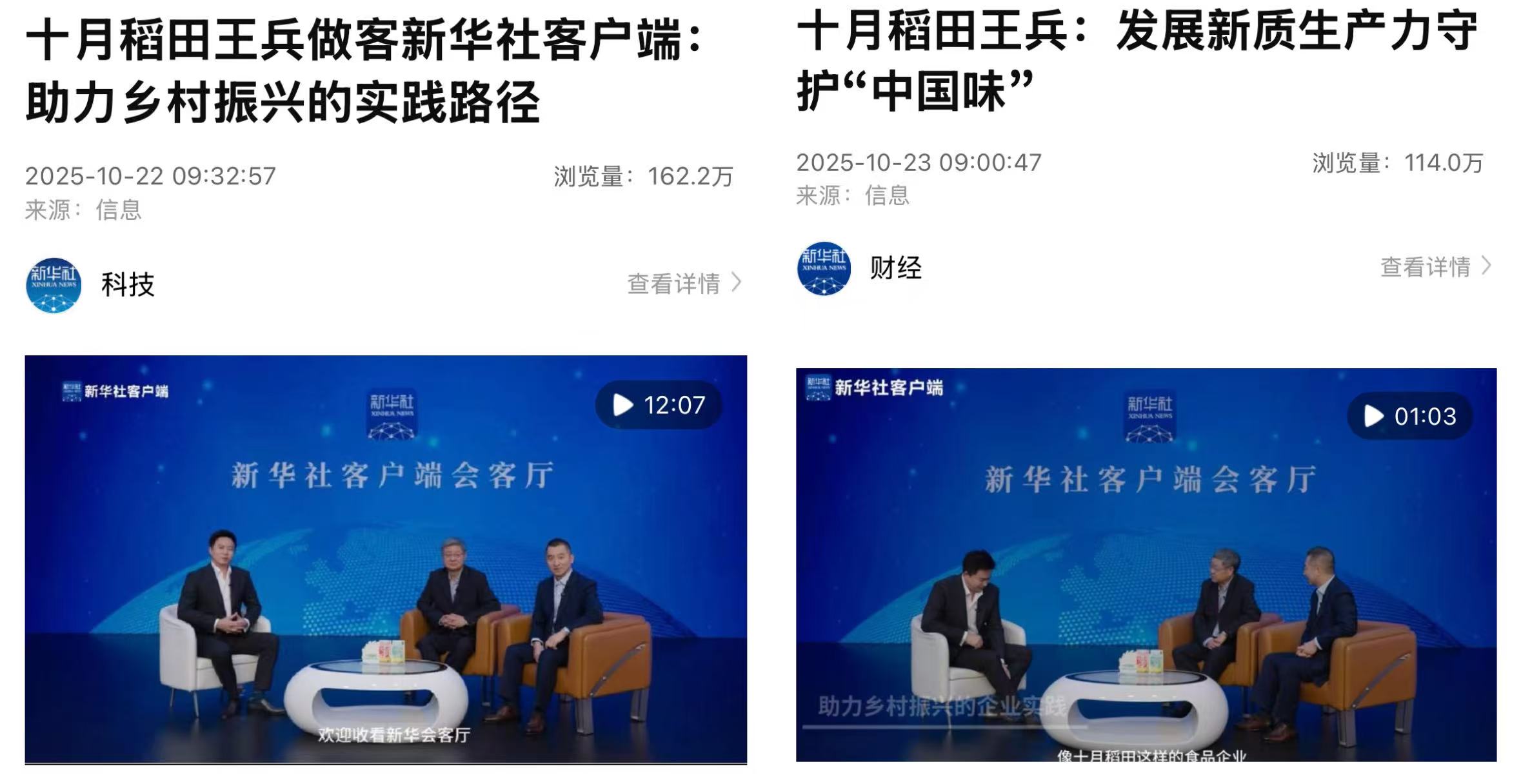 近日,家庭食品创新企业十月稻田联合创始人王兵做客新华社客户端,与中国农业风险管理研究会会长、乡村振兴专家张红宇教授一道,围绕“新质生产力如何推动食品行业升级、端稳中国饭碗”的主题开展深度对话,分享了十月稻田的创新实践与产业思考,为消费品企业提供了可借鉴的鲜活样本。