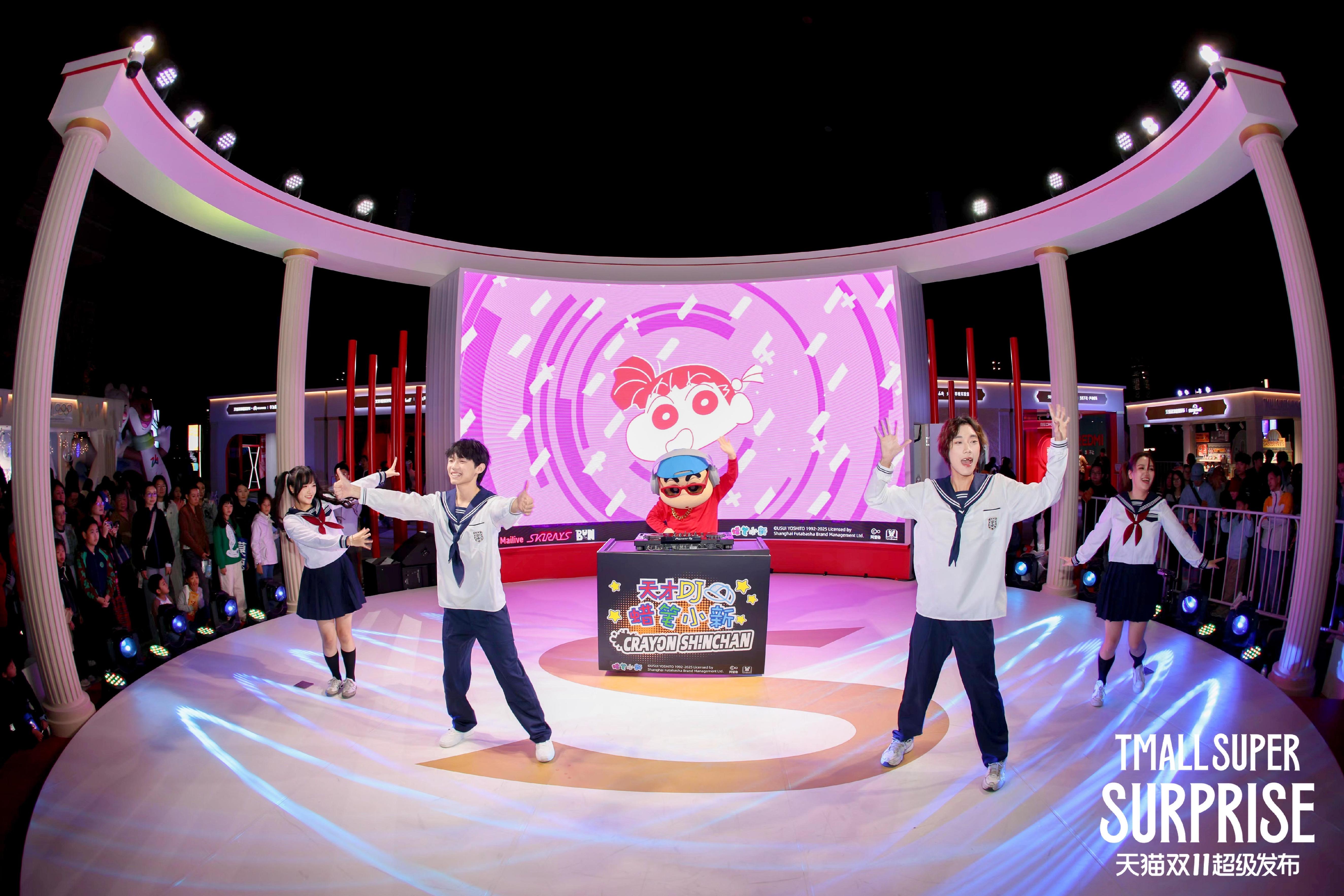 与此同时,本届天猫双11超级发布的精彩舞台也延伸至线下,20多家品牌共同构建了沉浸式互动体验空间,在线下的中心舞台开展了限时快闪活动。