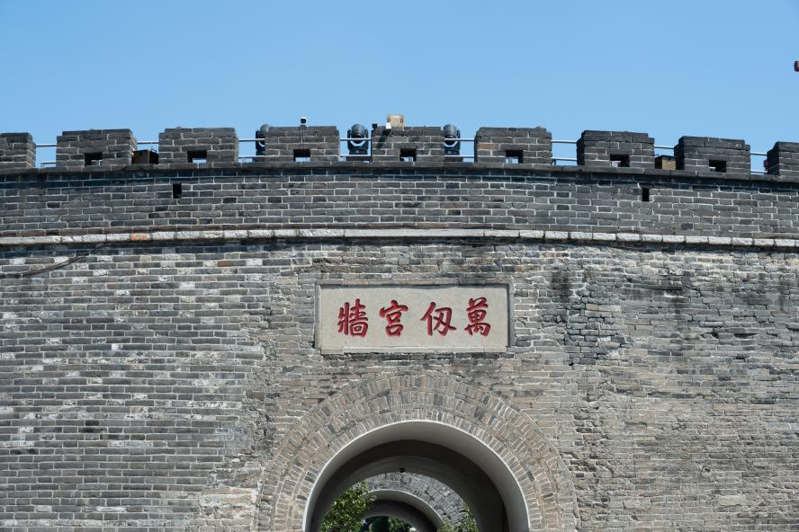 正说着,我就到达了“仰圣门”前,这里是明清时期曲阜故城的正南门,进入仰圣门就是孔庙了。与司机师傅告别后,我走下车,“万仞宫墙”矗立在我的面前,城墙前还横贯着一条小河,应该就是明清时期修建的护城河吧!现在的宫墙上挂满了灯笼,河道两边也有许多商家支起小摊,游客来来往往十分热闹,不知千百年前是否也是此般景象。