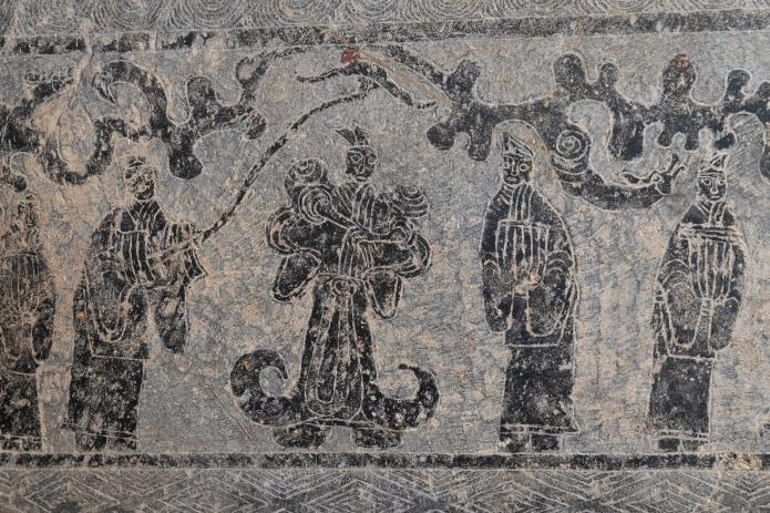 孔子的学问来源,除了他勤奋好学以外,还离不开良师益友。孔子学识渊博、擅长教导又虚怀若谷,相传他曾问礼于老聃、苌弘等人,对知识永远保持学习的态度。孔子对老子的请教,是在文物中常被表现的题材,也是古书中的常用典故。孔子向往周文化,公元前518年,在鲁昭公的帮助下,孔子得以从鲁国到东周洛阳拜访老聃问礼。这一故事在《史记》中留下了浓墨重彩的一笔。