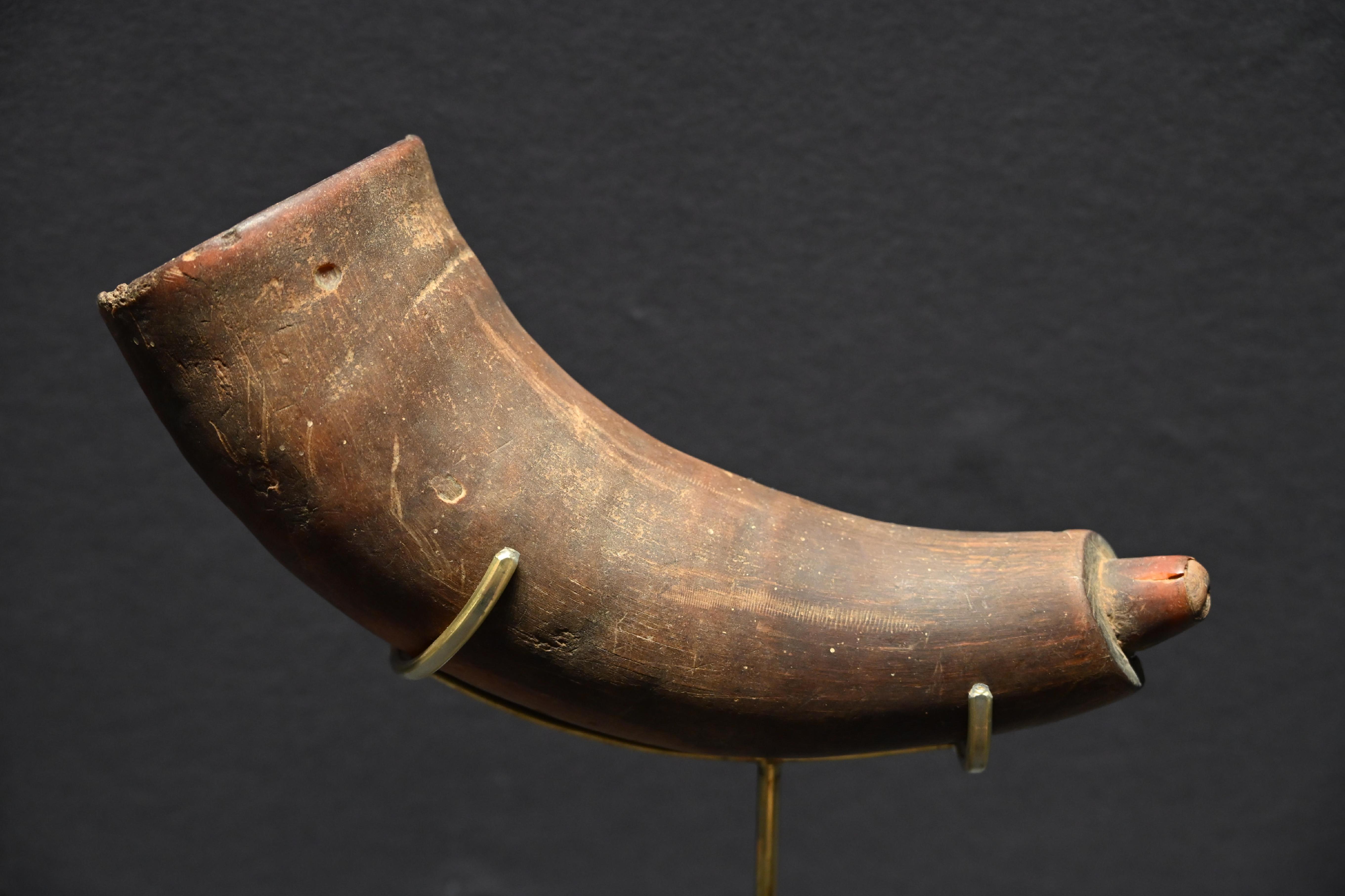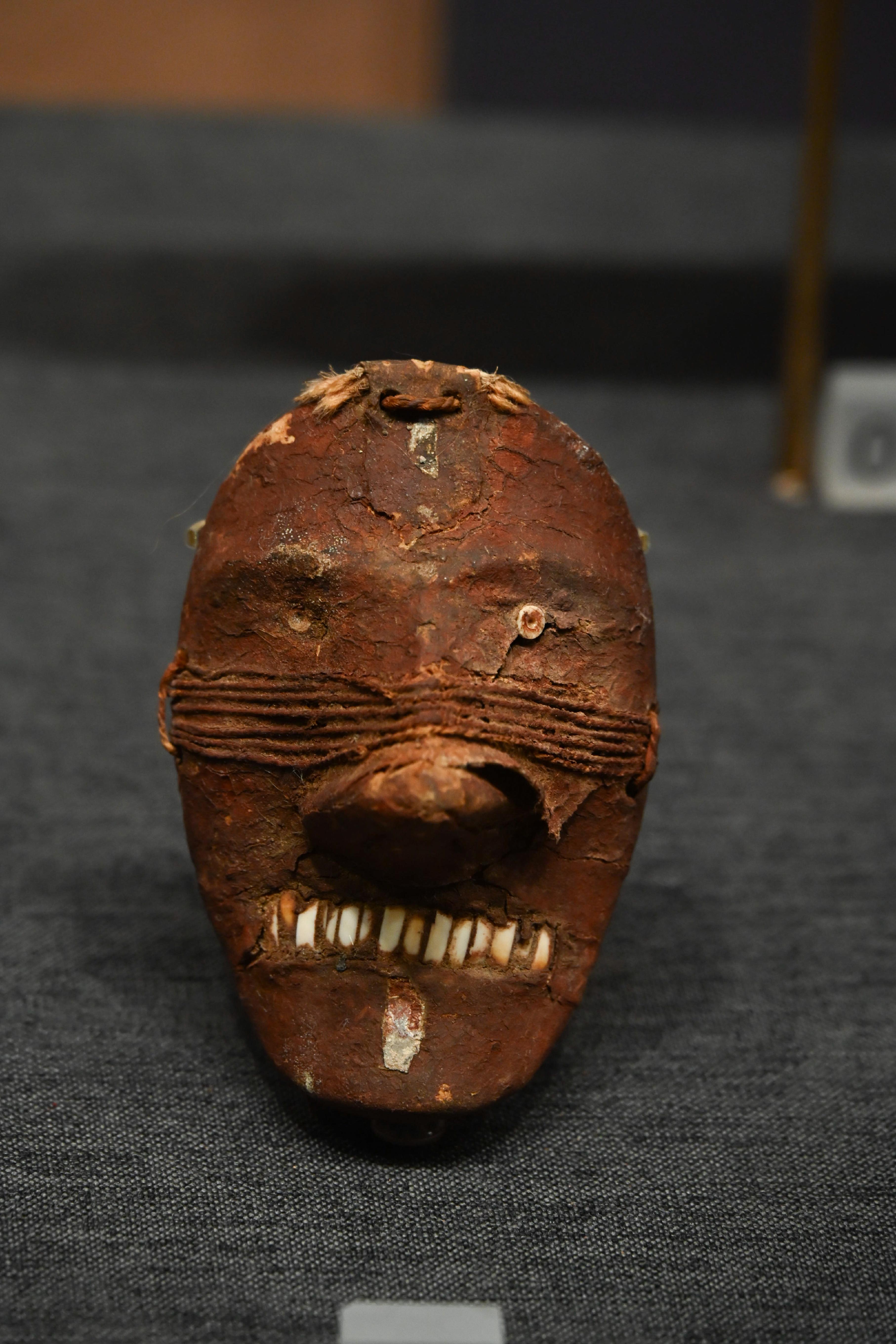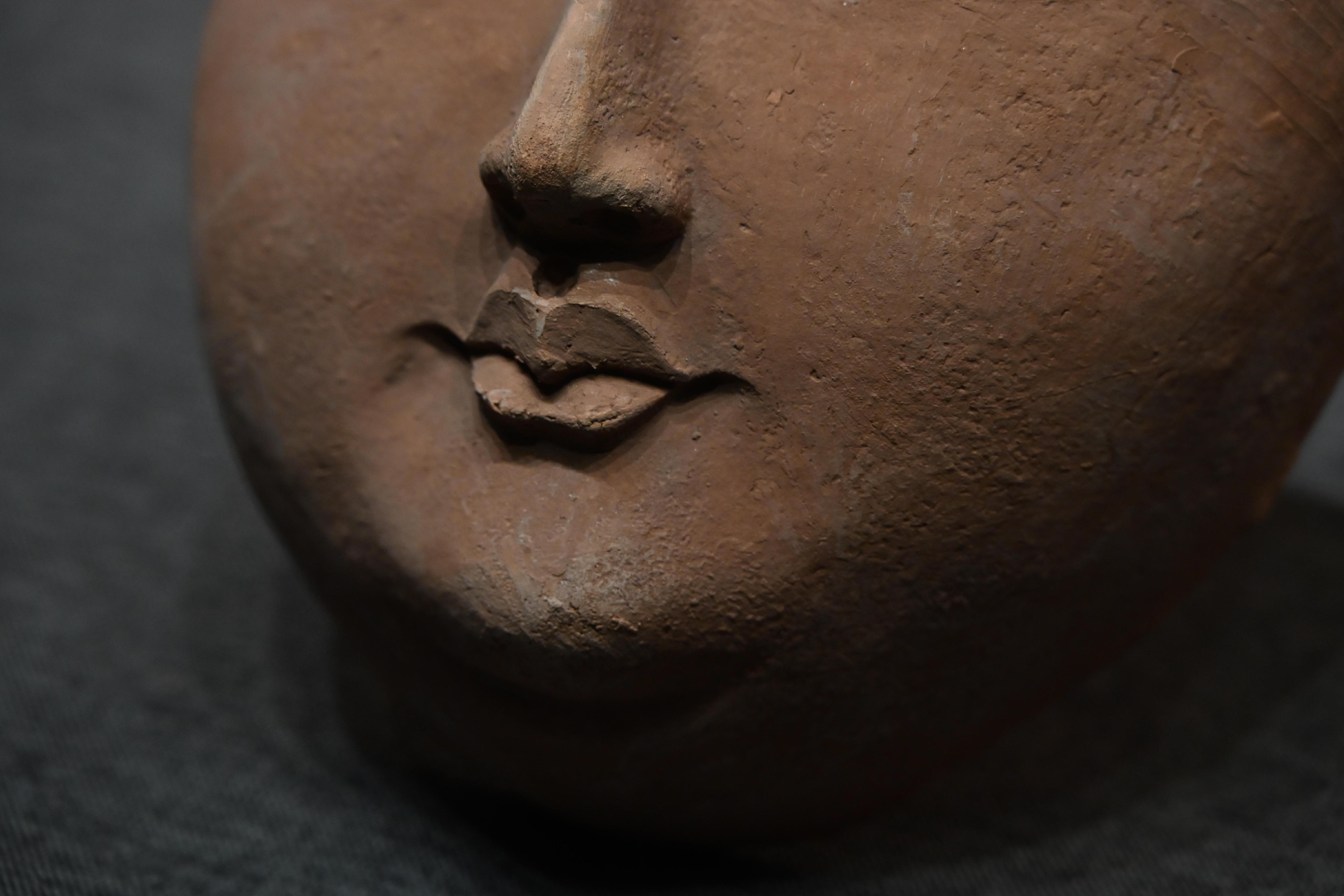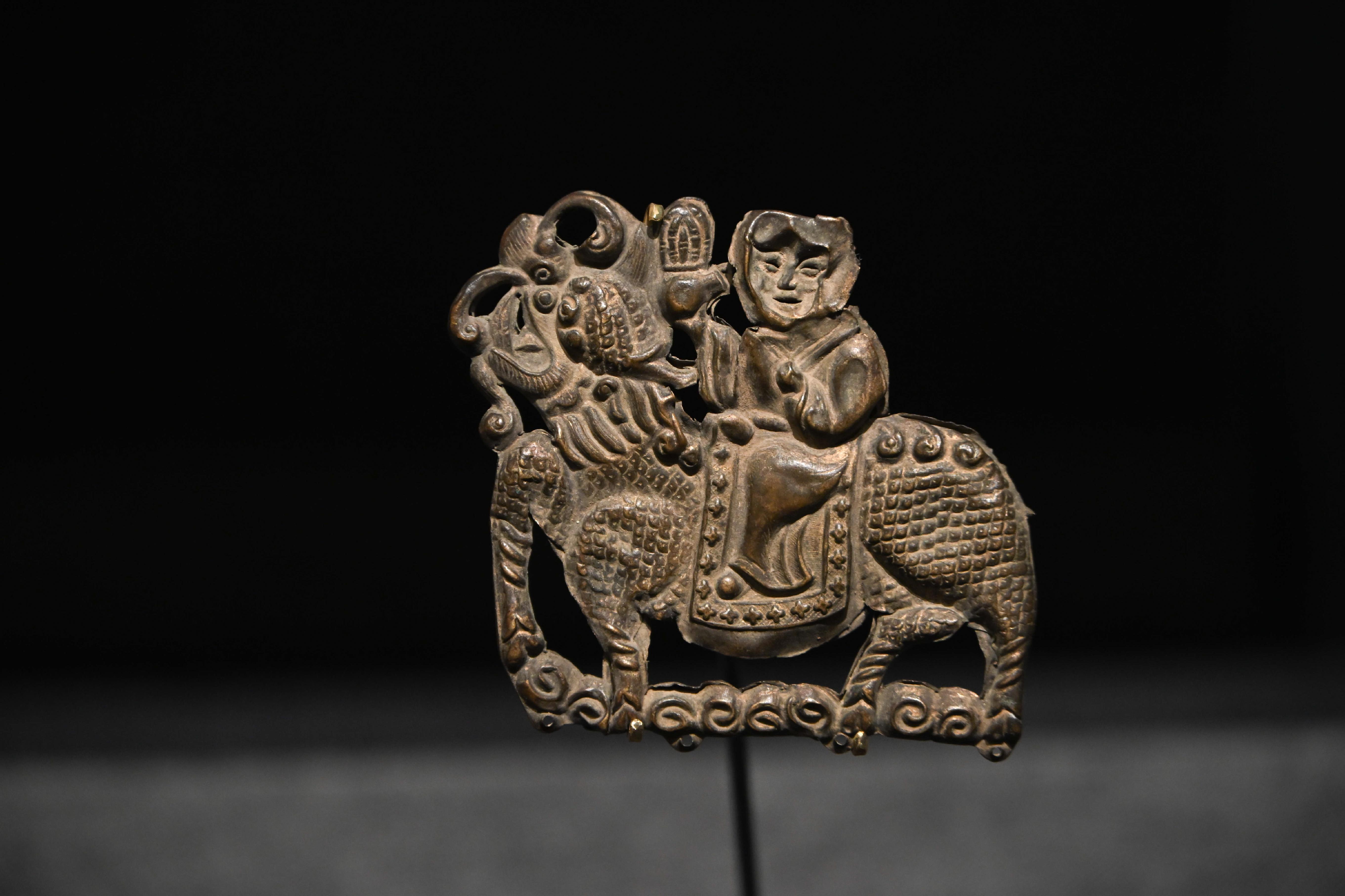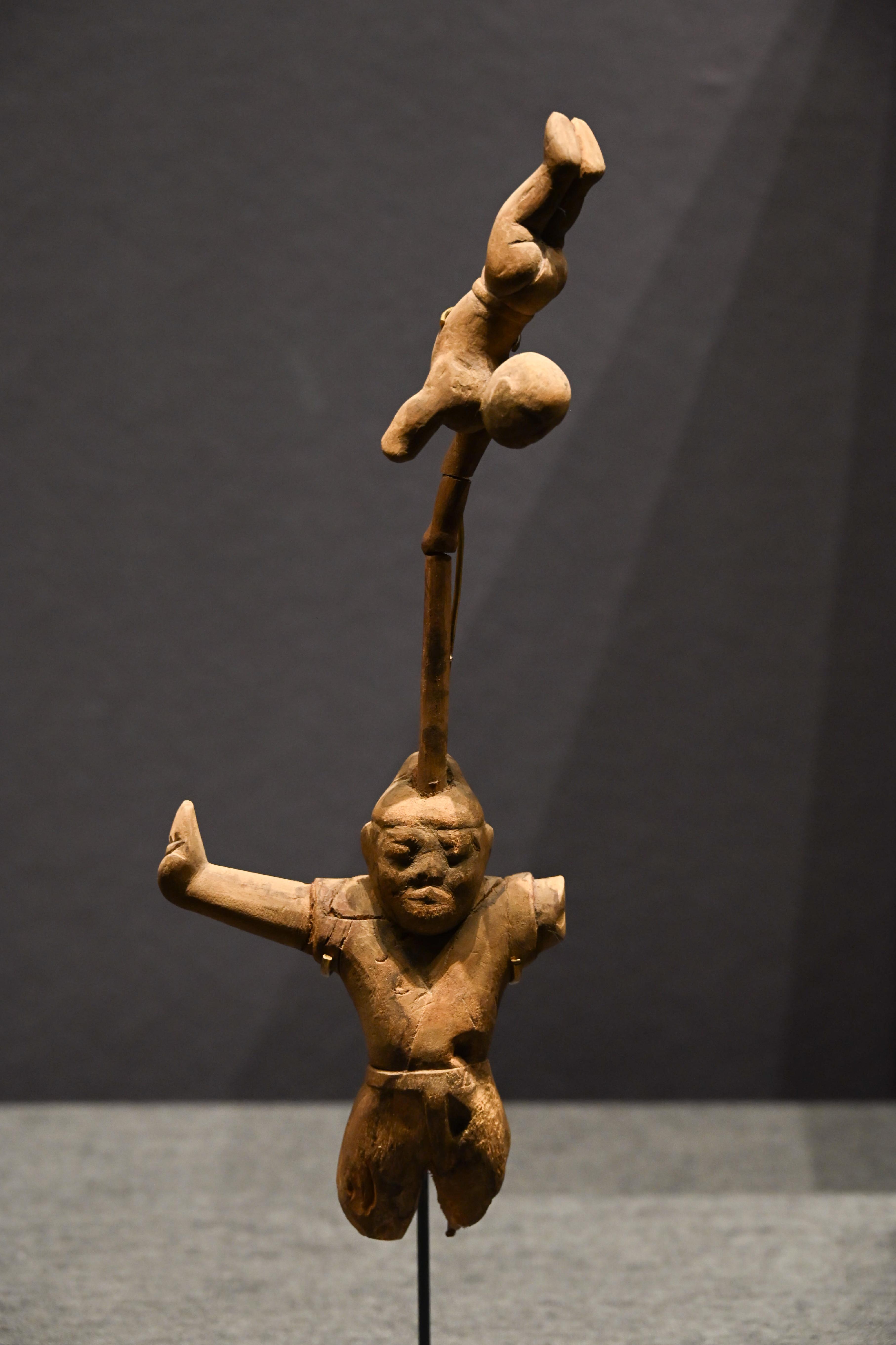 第二件展品,是唐代的彩绘天王踏鬼木俑。威风凛凛的天王一脚踏在狼狈的小鬼身上,无论是神情还是动作的刻画都非常生动传神。而且更吸引我的是天王那一身盔甲,形制繁复,颜色艳丽夺目,堪称华丽。而且这件木俑的制造难度很高,全身由头部、躯干、四肢等30余块独立构件组成,各部件通过榫卯结构连接。
