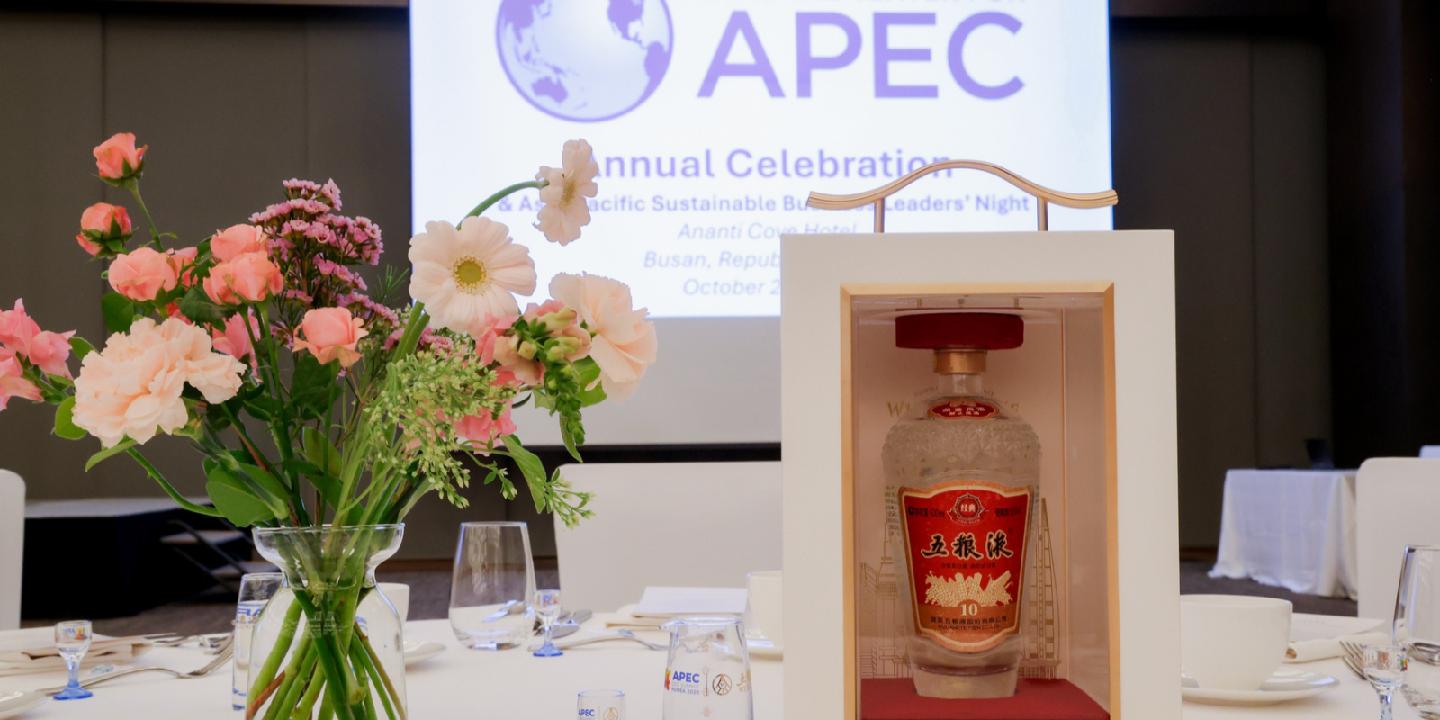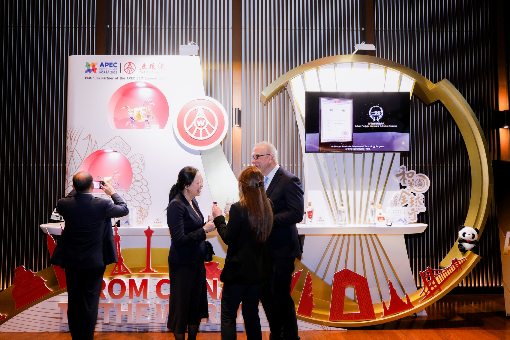 从韩国庆州艺术中心的峰会主题展台到釜山亚太可持续工商之夜晚宴现场,五粮液以千年酿造技艺为根脉,以“和美”文化为纽带,在国际舞台上生动诠释中国白酒的当代价值,为亚太合作注入东方智慧,加速推动中国白酒从“文化出海”向“价值扎根”的跨越。