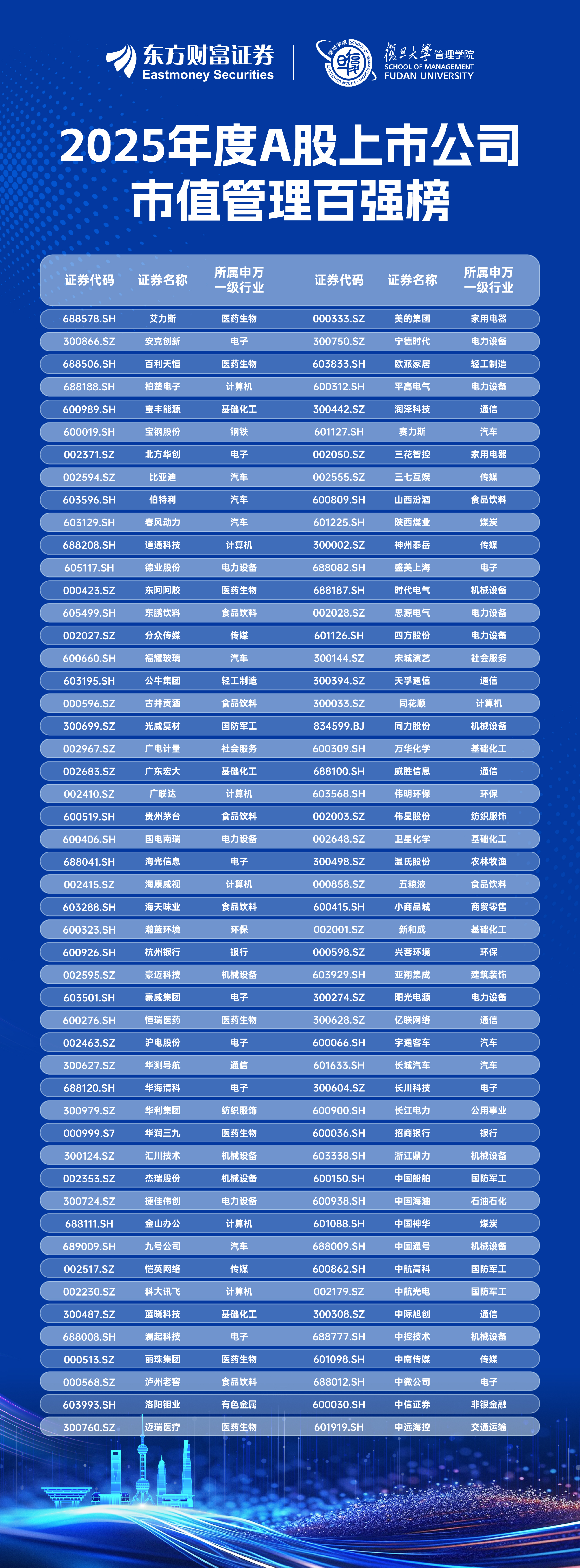 11月5日,东方财富证券与复旦大学管理学院联合主办的《2025上市公司市值管理白皮书》(以下简称“2025年白皮书”)发布会在线上举行,吸引数万名上市公司代表、投资机构人士及个人投资者观看。作为双方在市值管理研究领域的升级力作,“2025年白皮书”在去年《央国企上市公司市值管理白皮书》基础上深化拓展,将研究视野从央国企延伸至全市场,通过优化价值创造、价值成长、价值传递、价值维护的理论框架与量化指标体系,构建兼具学术深度与实践价值的市值管理指引,为各类上市公司提供系统的策略参考,同时为资本市场规范发展注入理论与实践动能。