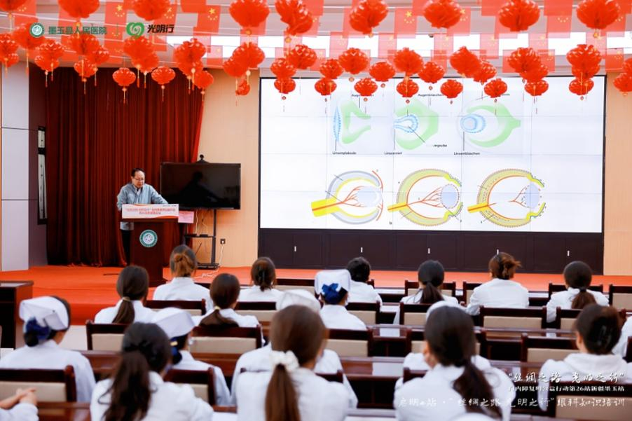 活动期间,同步举办启明e站·“丝绸之路 光明之行”眼科知识培训,从基础理论到临床实操,全方位提升和田地区40余位基层医护人员的专业能力。在公益活动义诊手术中,医疗队专家通过“一对一”带教、病例研讨、手术示范等方式,与当地医护人员深度交流,培养本土眼科骨干。