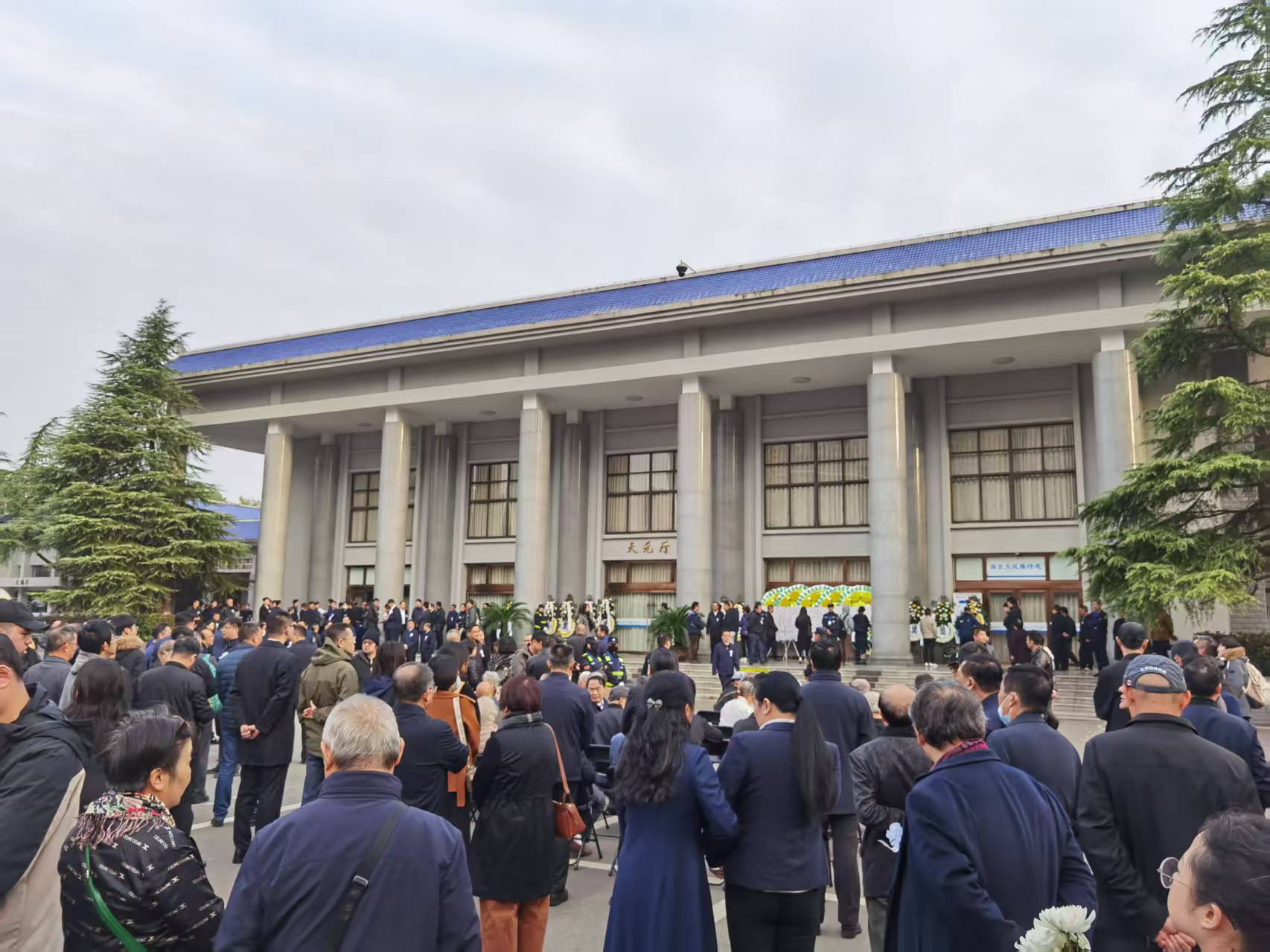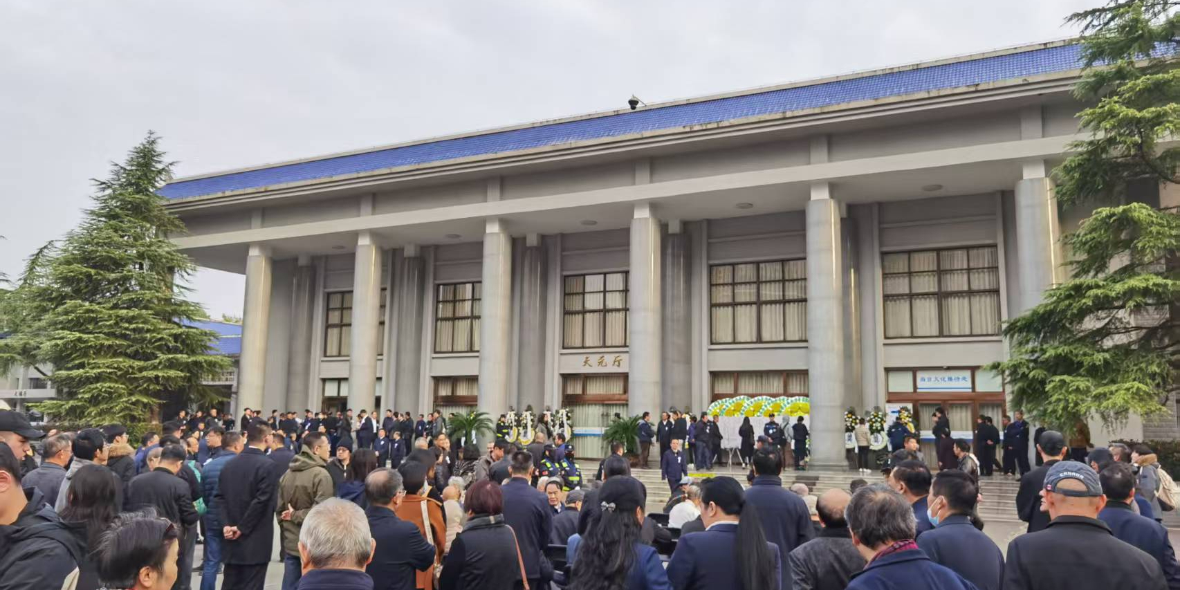 部分自发前来悼念的人在广场外等待,为维持现场秩序,保障告别仪式庄重进行,殡仪馆安排了特定通道以供出入。