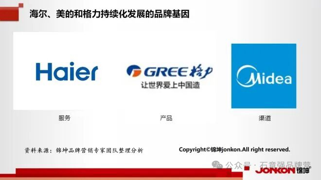 综上所述,海尔、美的和格力在从十亿到百亿的过程中,分别以服务、渠道和产品作为品牌基因,通过不同的战略路径实现了各自的成功。这一过程不仅需要对自身优势的深刻理解,还需要在此基础上制定相应的发展策略。企业在持续化增长的过程中,必须不断优化和强化自身的核心基因,才能在市场中占据有利位置,实现更大的规模和影响力。