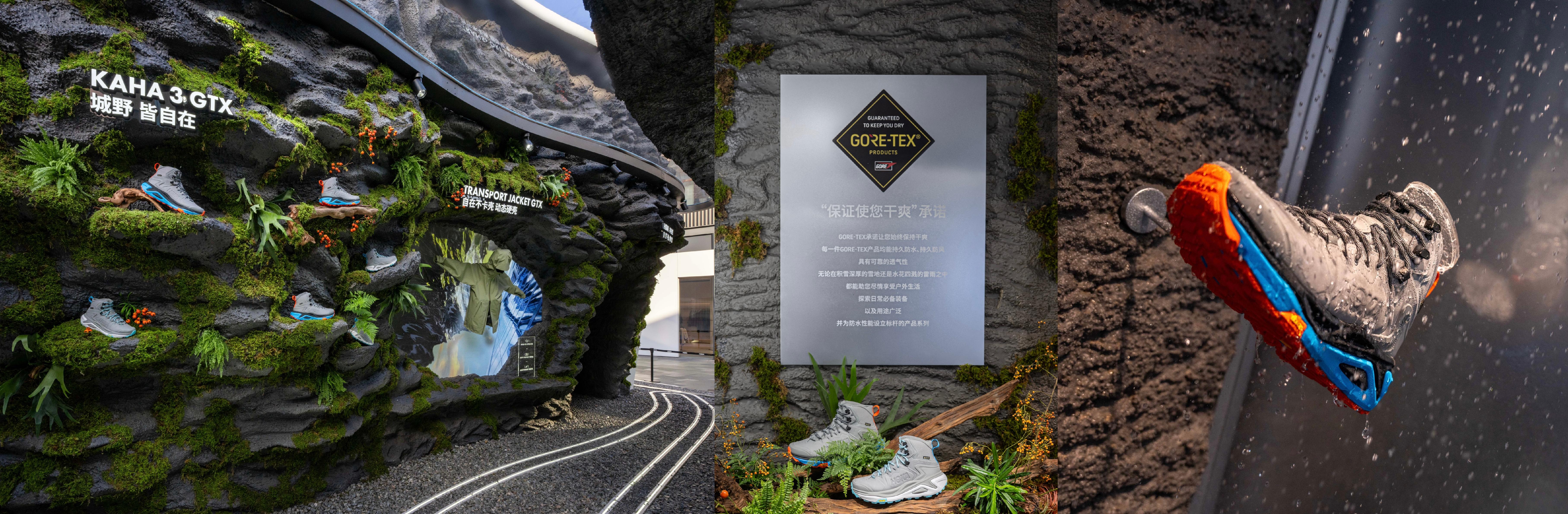 在产品体验层面,空间内设立了“动态实验室”与“山谷行迹”区域。参与者可以在此直观了解并体验井柏然火山徒步同款装备所采用的GORE-TEX防水防风科技。展出的HOKA KAHA 3 GTX经典徒步鞋款,强调了其在长距离徒步中的驾驭能力;而HOKA全新户外系列动态硬壳,则展示了其流线型廓形如何适应户外山野与城市日常等多种场景,体现了品牌在功能性与美学设计之间寻求平衡的理念。
