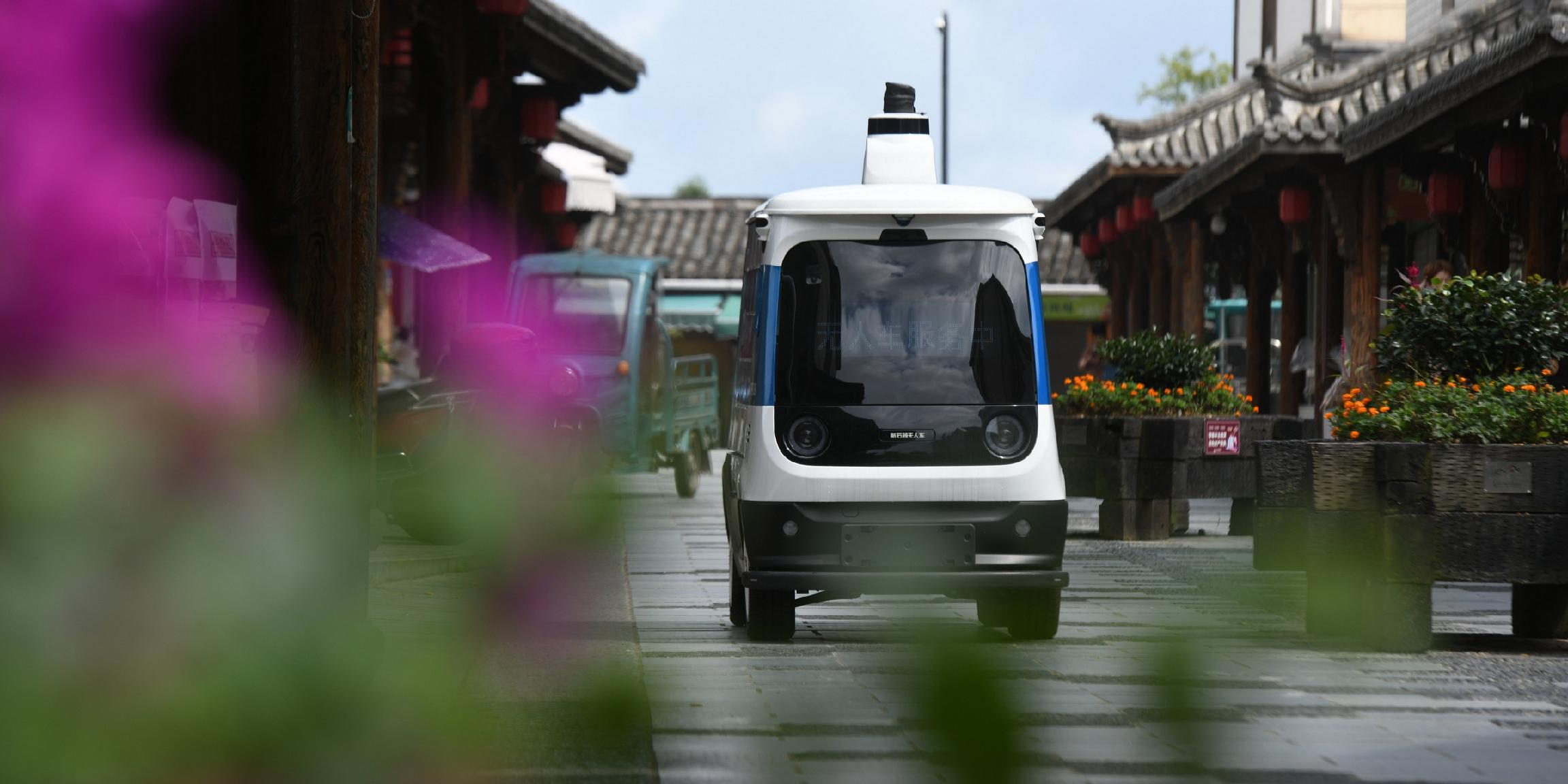 最初上路时,兰树新专门骑着电瓶车一路跟着,眼看它在空无一人的戈壁滩上缓慢前行,遇到行人会自动播报“请保持两米距离”,碰上障碍物会自动刹停,直到驿站老板手动解锁。“它比我驾车规范。”兰树新说。后来他不再跟着了,只用手机查看运行状态,打算再买两台。