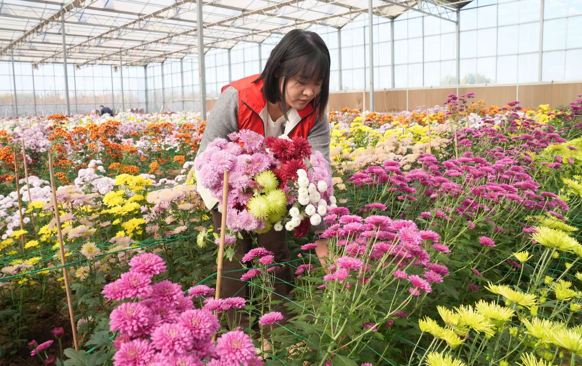 据八方农场研学板块负责人李晓祎介绍,2025年首次举办彩菊节,自开展以来,累计接待游客约8万人次,目前菊花种植亩产1000斤,亩产效益可达1万元左右。
