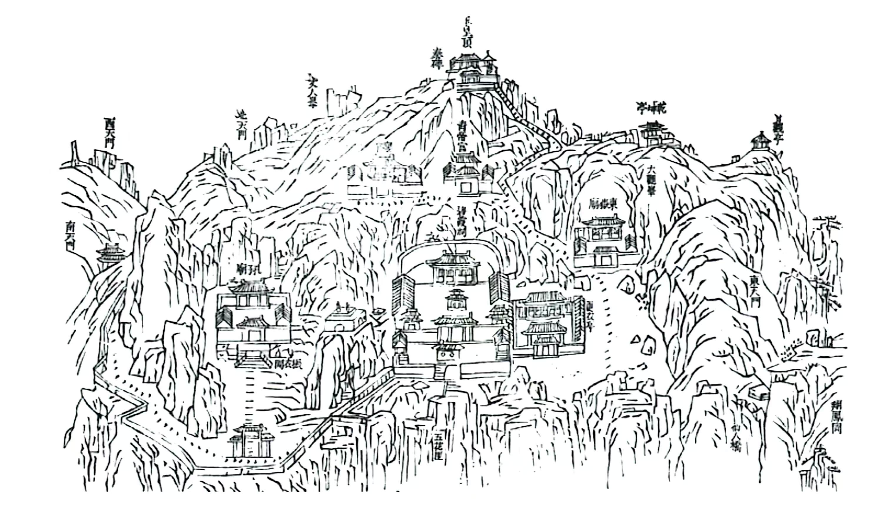 姚鼐和朱孝纯上山的道路遍布霜雪,一路上大雾弥漫,石阶又被冰冻得很滑,不很好走,“道中迷雾冰滑,磴几不可登”,好在他们装备齐全,倒也能够慢慢逐级攀登。从泰山南边的山脚出发,他们共要爬七千多级石阶,才能到达山顶。泰山南面有三谷,也即三条水道,姚鼐一行人选择的路线是先从中谷进去,走到一半,翻到西边的水道,如是再到泰山山顶。三谷的路线无论从哪一谷走,最后都会汇合到中天门,再沿中天门而上到南天门,最后到泰山山顶玉皇顶。